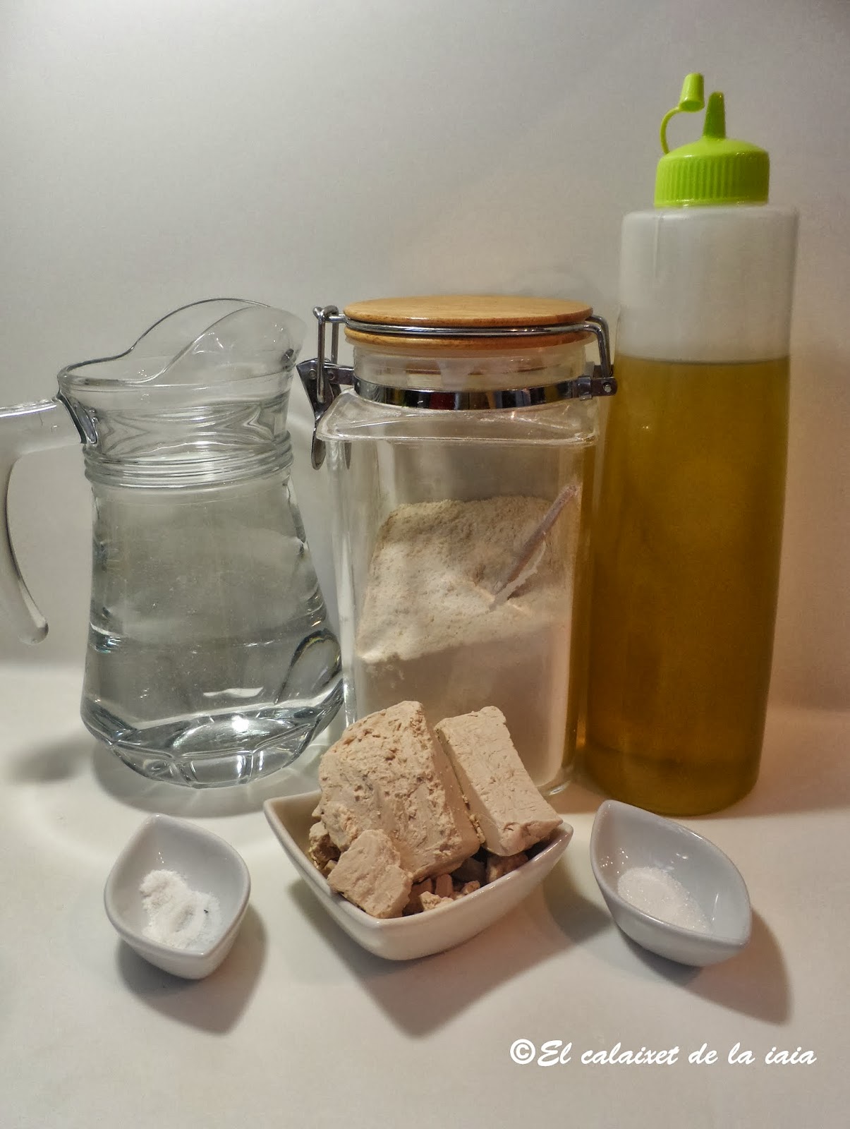 Con la titaina que tengo en el frigo, voy a preparar otro plato típico de los poblados marítimos de Valencia, (Natzaret, Grau, Cabanyal, Canyamelar…) la «coca salada de titaina», otro manjar con receta familiar muy antigua, que no he modificado en absoluto, de hecho, hago otras masas, con vino blanco, gaseosa, o con cerveza, pero esta es la receta tradicional, con «rent del forn» levadura del horno, natural de panadero, es la receta familiar, y no la he cambiado en absoluto.