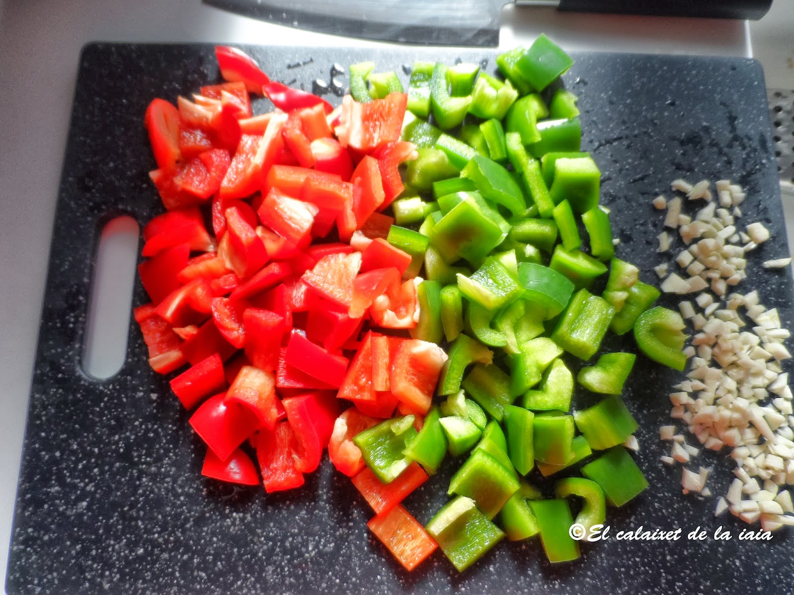 incorporamos los pimientos, que teníamos prefritos y reservados,