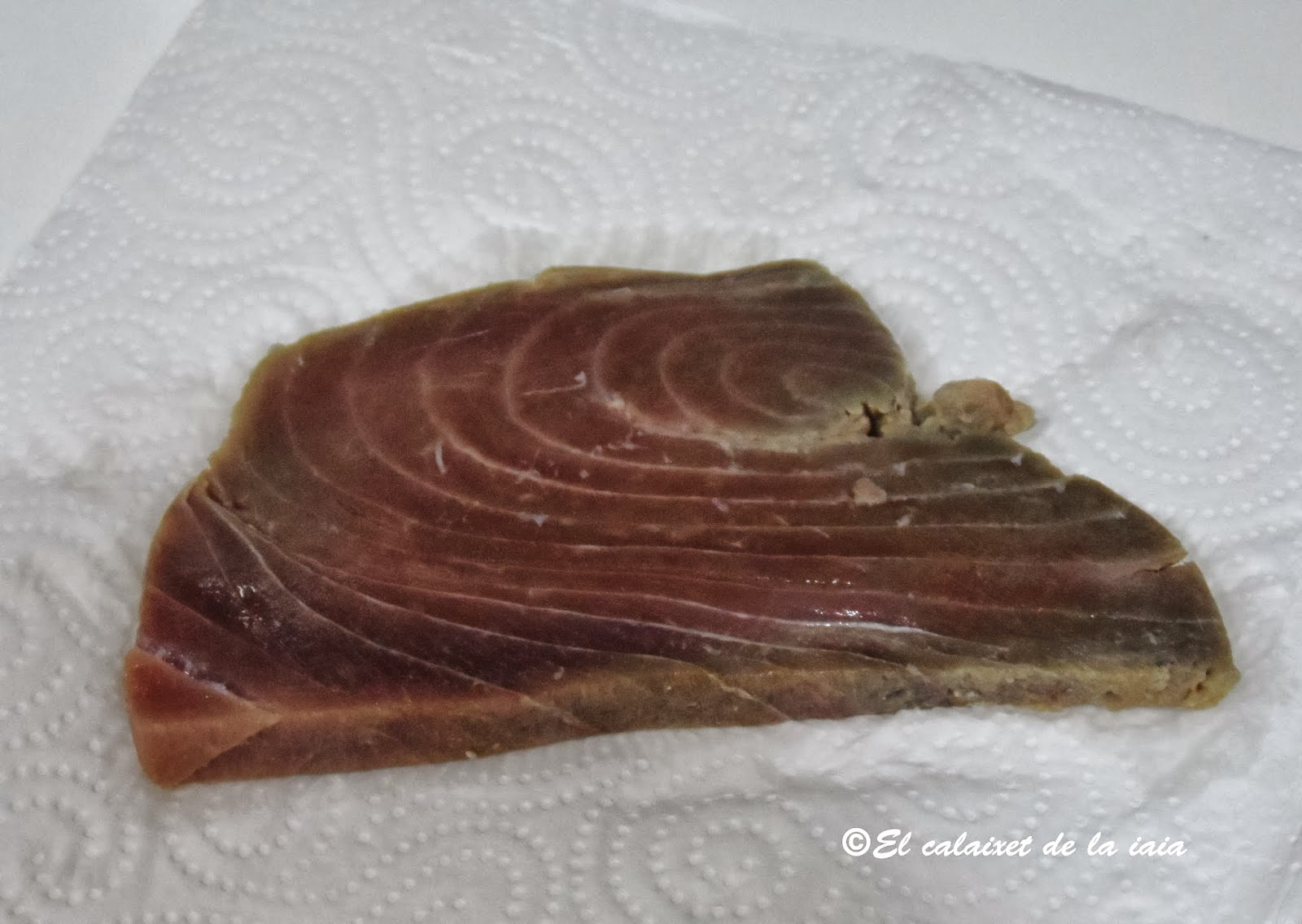 La mojama o «moixama», también muy popular en la terreta, se hace con el lomo del atún y la «tonyina» con la ventresca.
