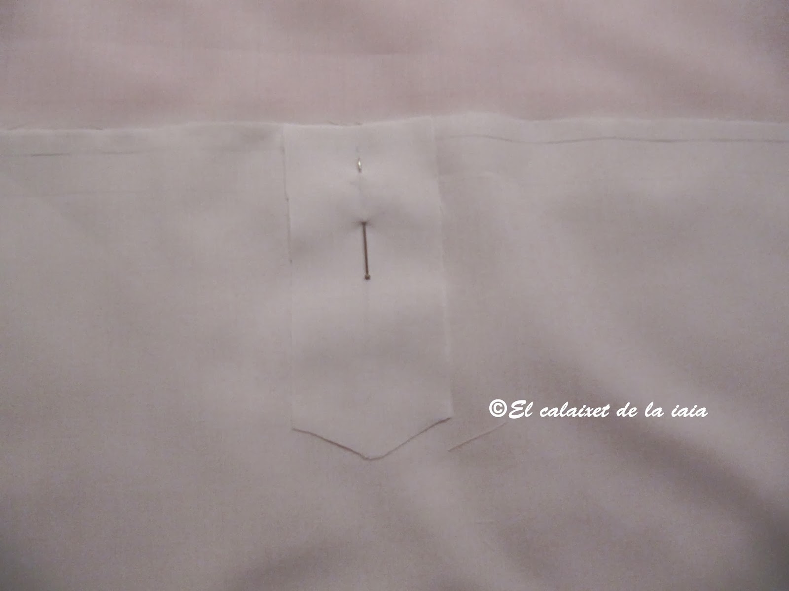marcaremos una señal en los que será el centro del escote para confeccionar el «coret», o sea la abertura para pasar bien la cabeza sin despeinarnos.
