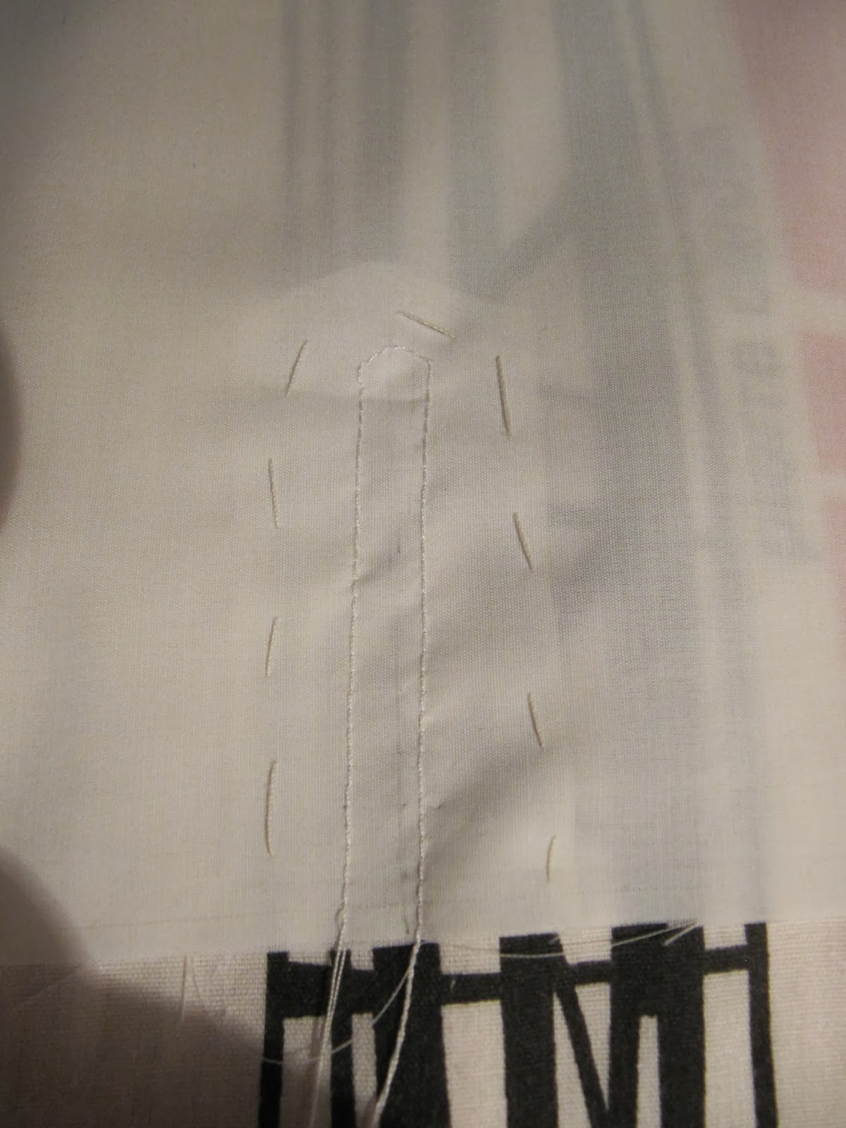 recortaremos un trocito de tela como en la imagen y fijaremos por el derecho con un alfiler, hilvanaremos
