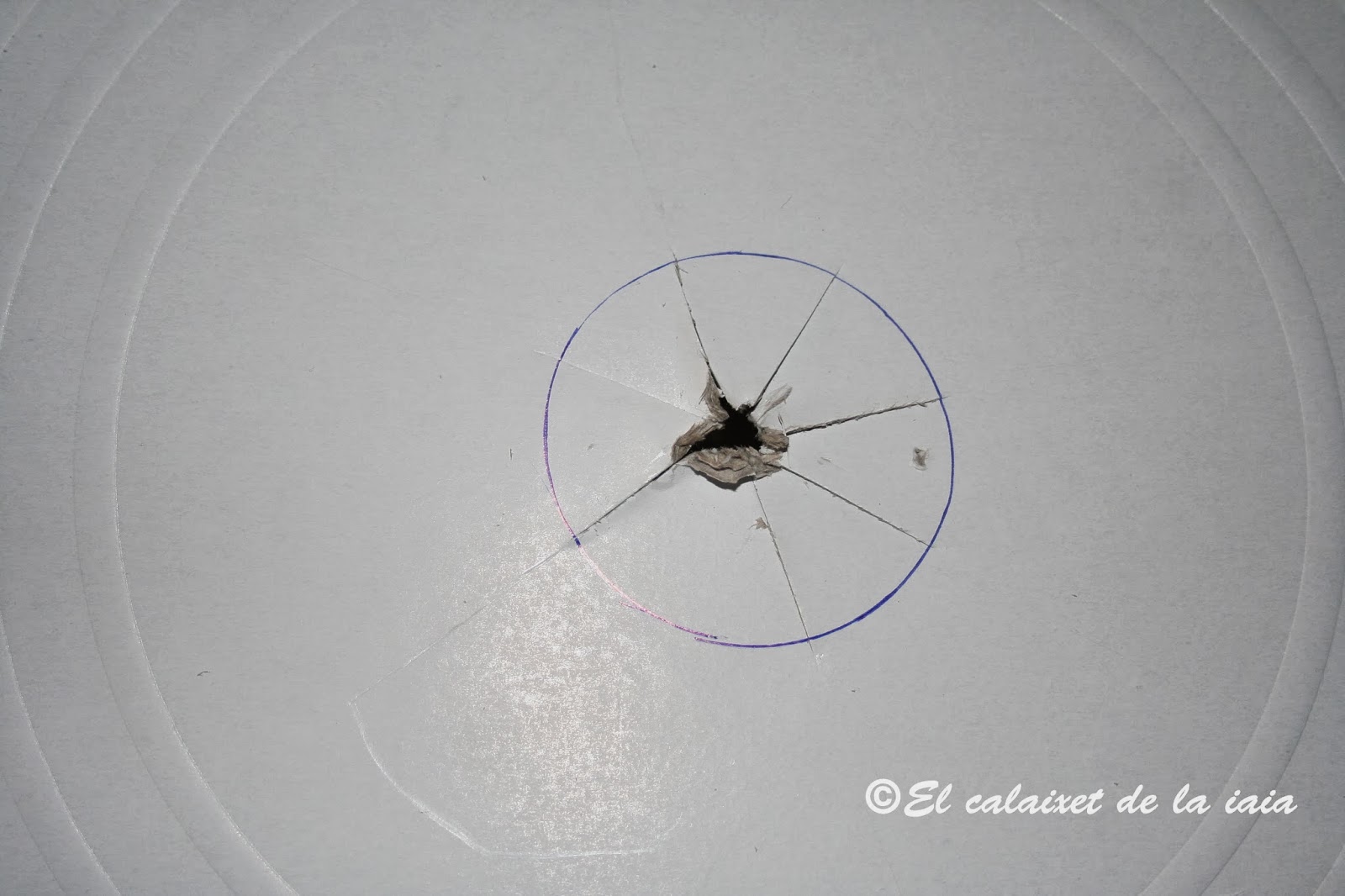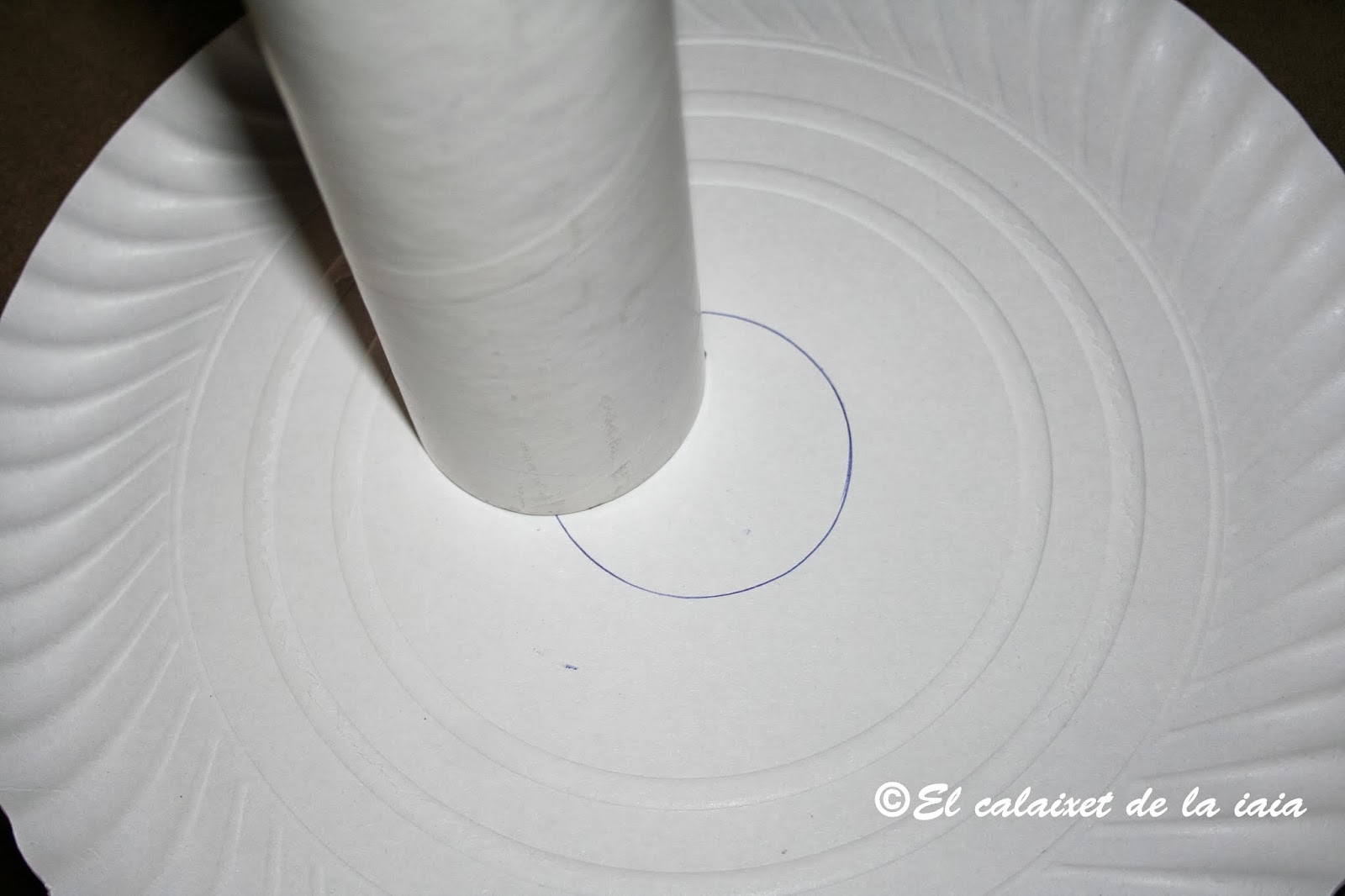 con el tubo de cartón señalamos el centro de la segunda bandeja