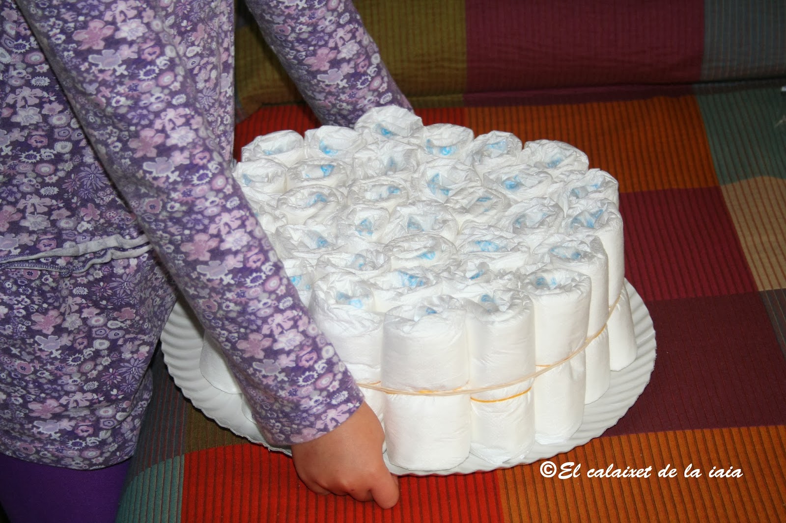 Cuando estábamos esperando el nacimiento de mi nieta pequeña, su hermana me decía que quería regalarle algo hecho por ella, para llevarlo al hospital y que fuera una sorpresa para su mami, así que pensando en que hacer, se me ocurrió preparar una tarta de pañales.