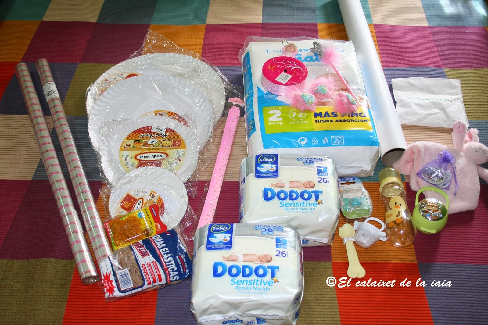 La hicimos con mucha ilusión y para lo caras que valen en las tiendas, nos salió muy bien de precio, luego ya todo depende de los regalitos que queráis poner, pero queda ideal para regalar a un recién nacido,y a los papis le viene muy bien ya que es algo muy práctico.