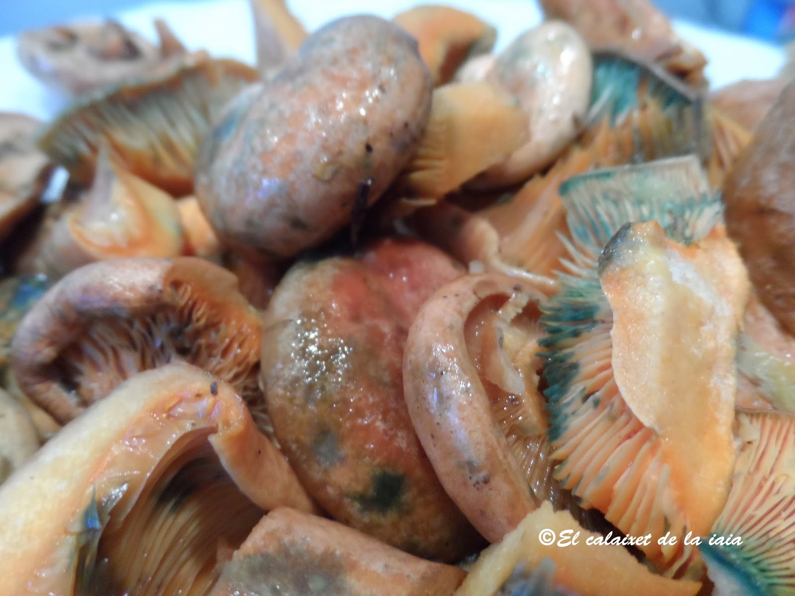 En ésta ocasión, los rebollones o «esclatasangs» son frescos, pero los cocino muy a menudo con rebollones o níscalos congelados o en conserva.