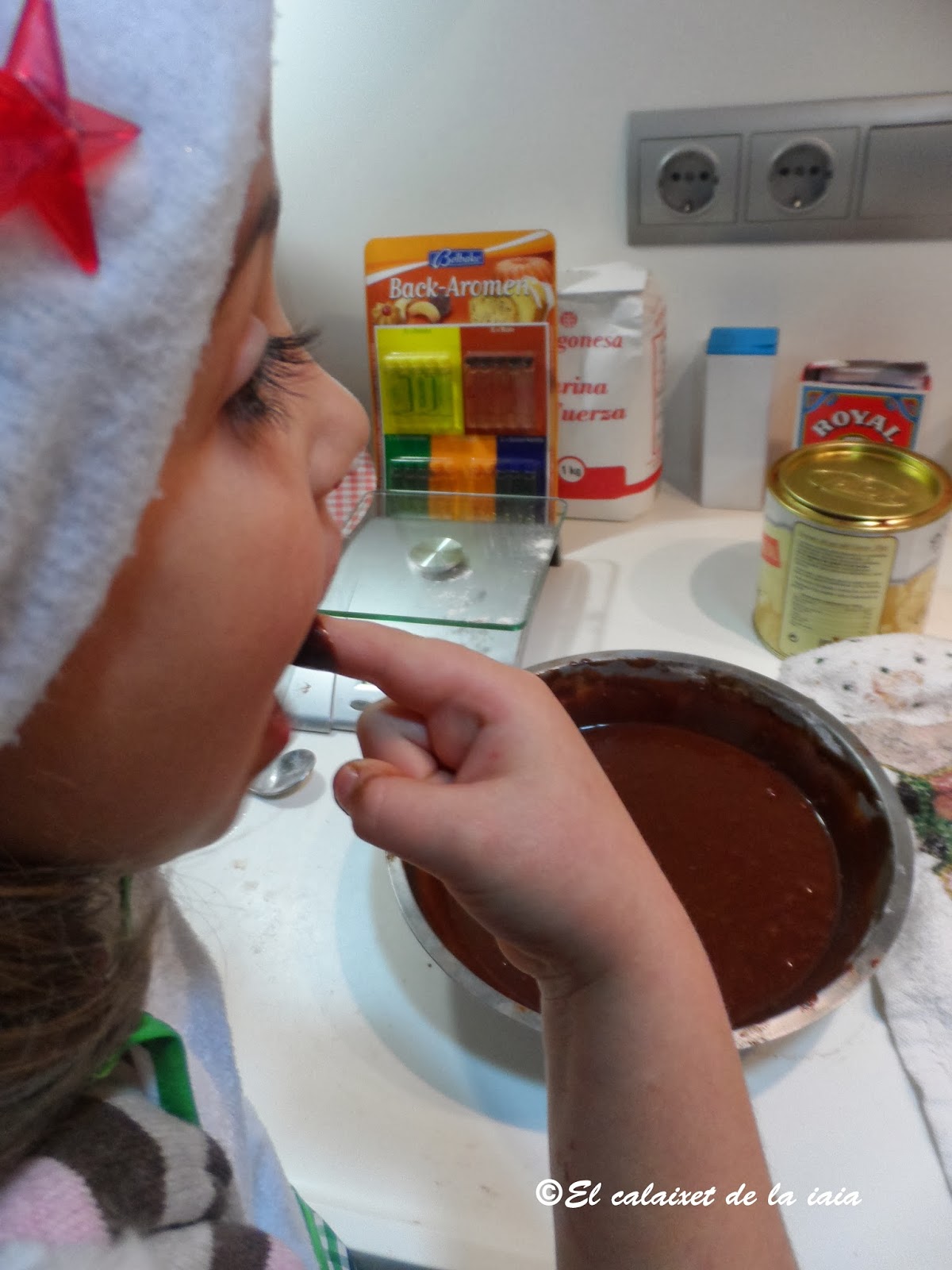 …y ha llegado el momento de aprovechando el descuido de la fotógrafa, meter el dedo en el cuenco para ver que sabor tiene