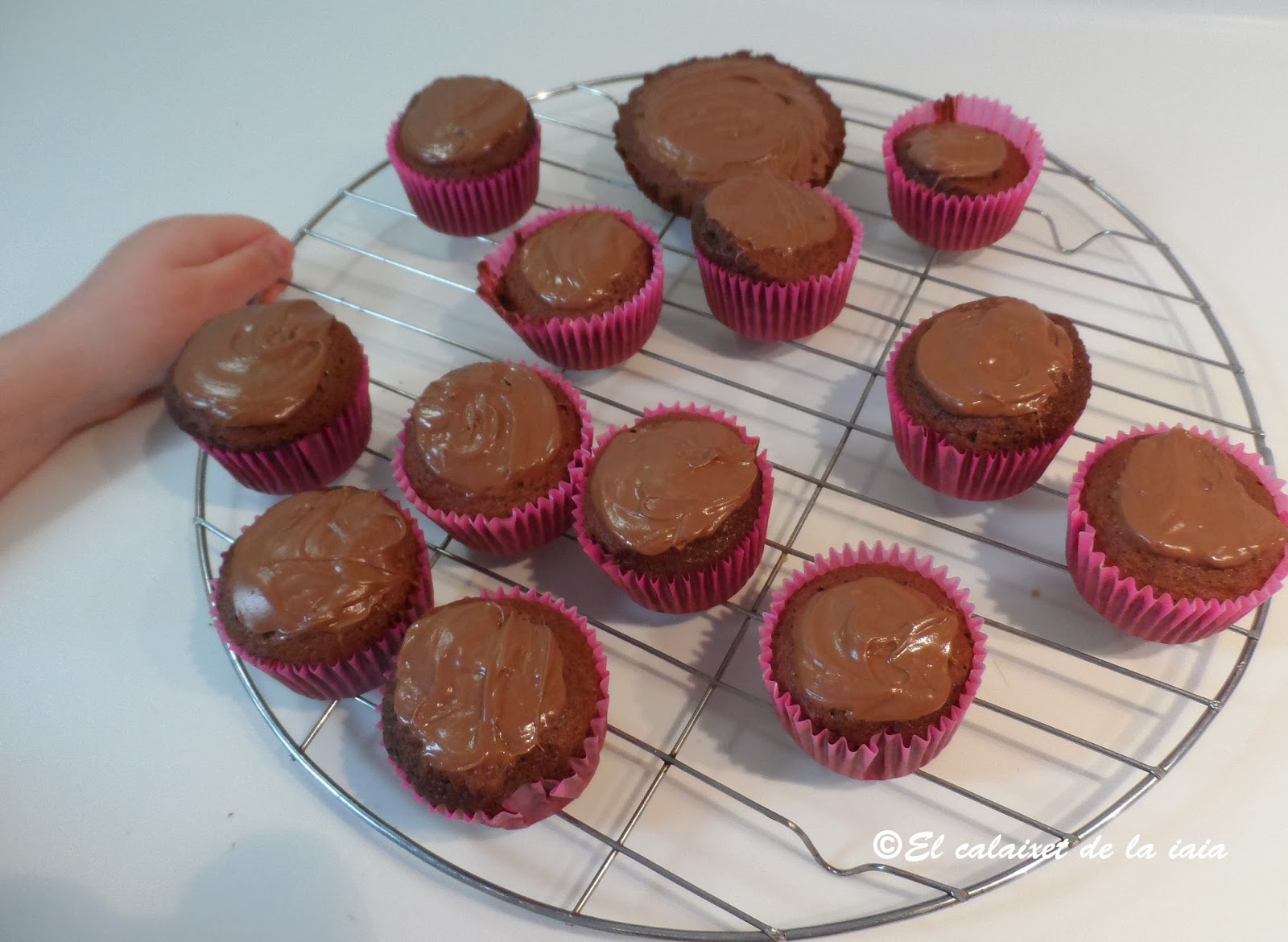 cubriremos los muffins de una cobertura de chocolate con leche derretido al microondas