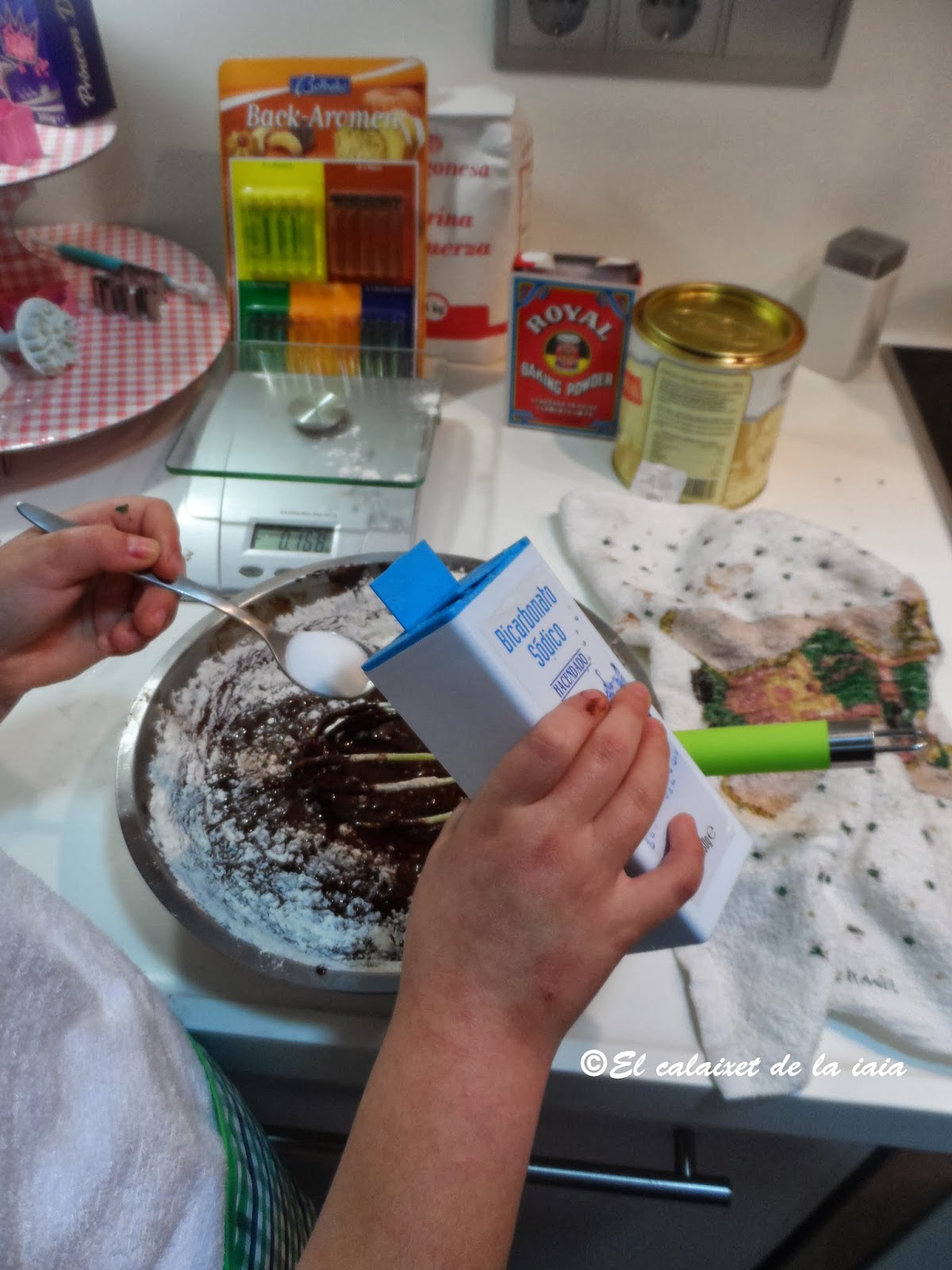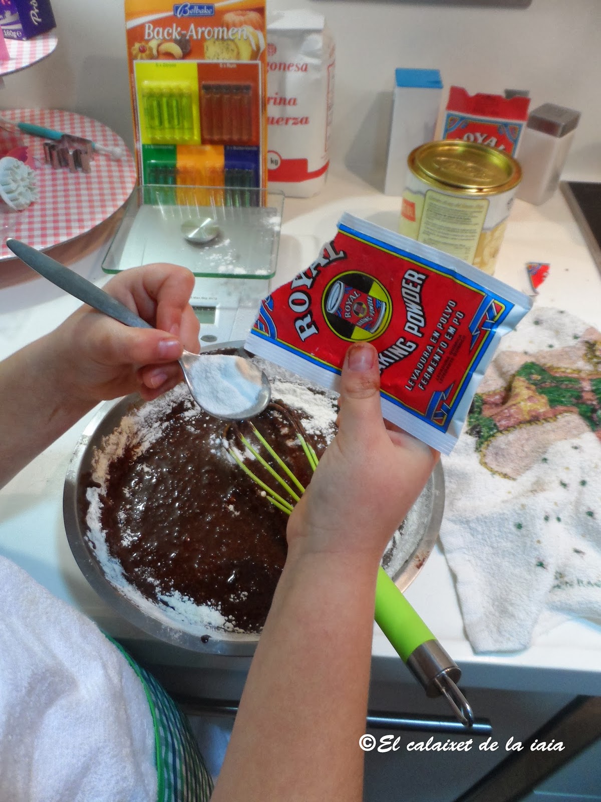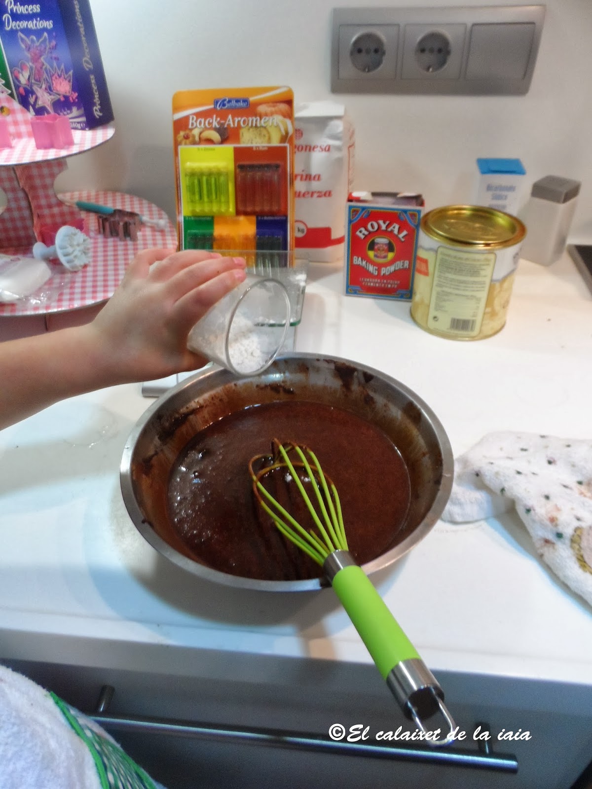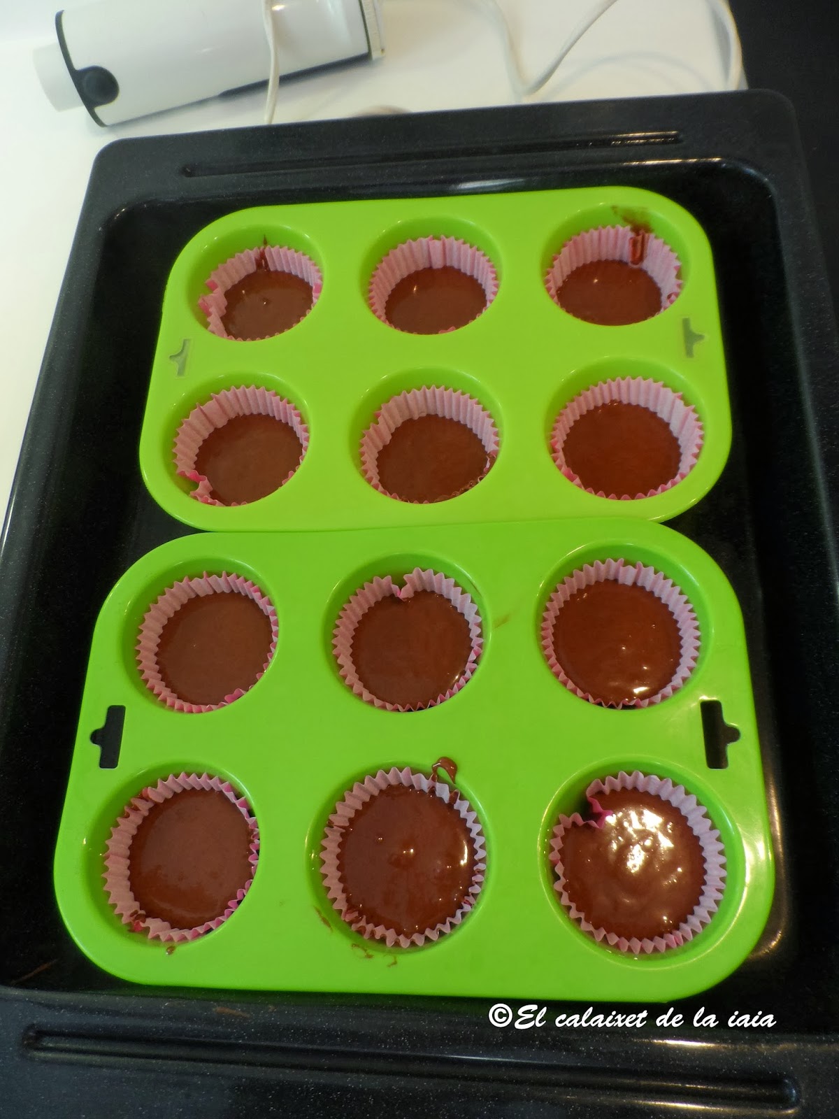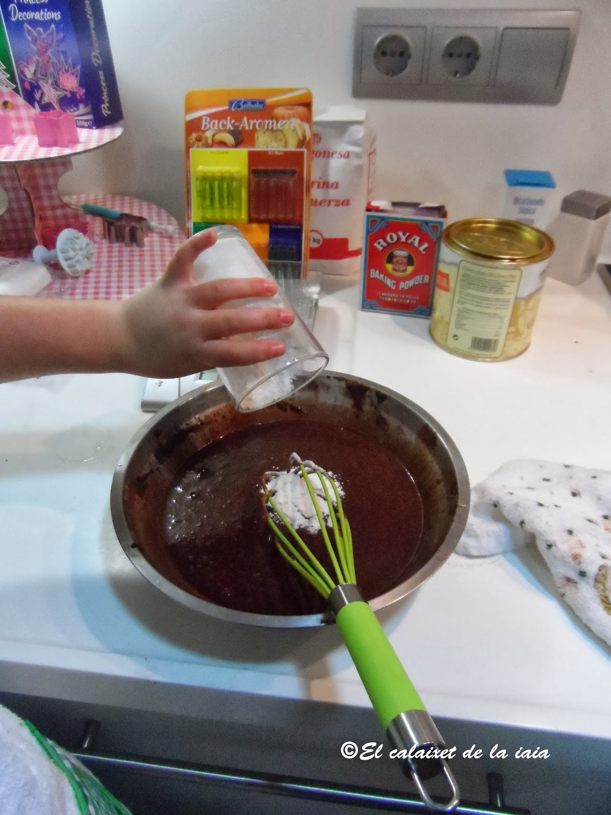 Para ello preparamos primero una especie de magdalenas de chocolate, pero mucho mas jugosas.
