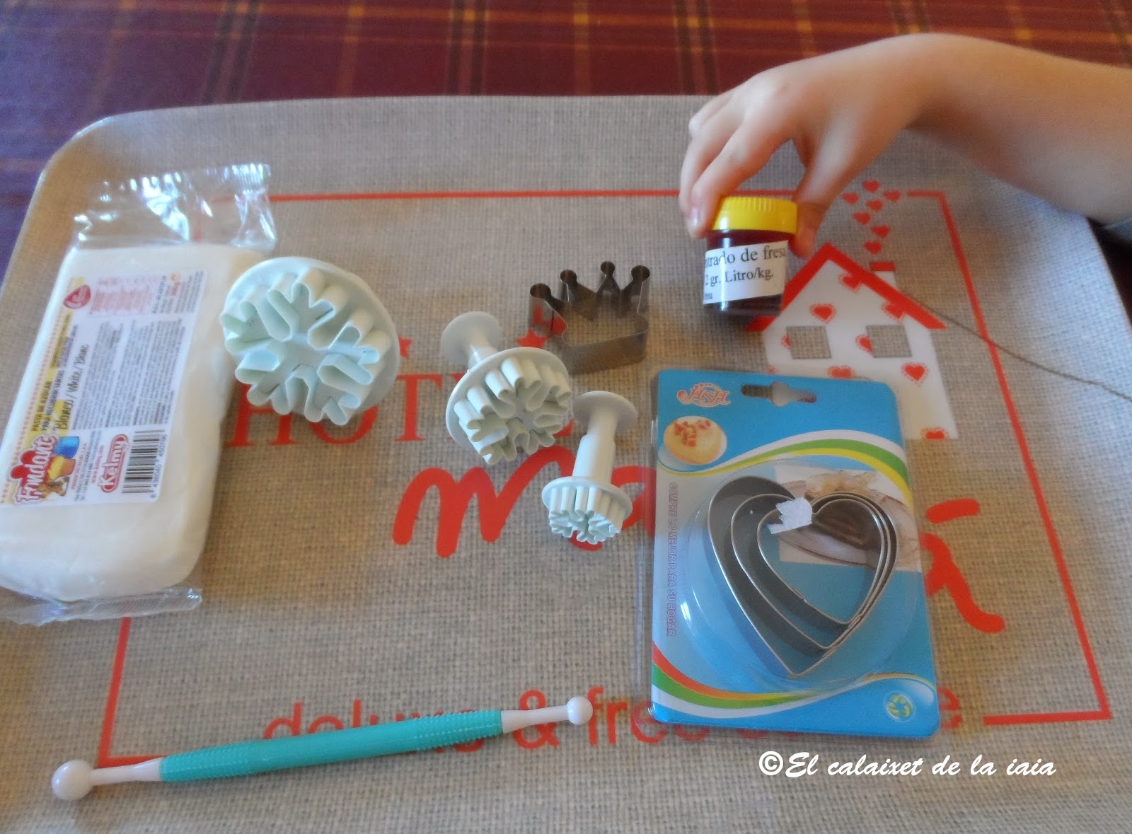 Ahora empezamos la segunda parte y es preparar la decoración, en éste caso la base será el fondant. El fondant se compone de azúcar y gelatina, y es una masa blanda que se puede malear fácilmente, lo que permite hacer con ella casi cualquier tipo de adorno
