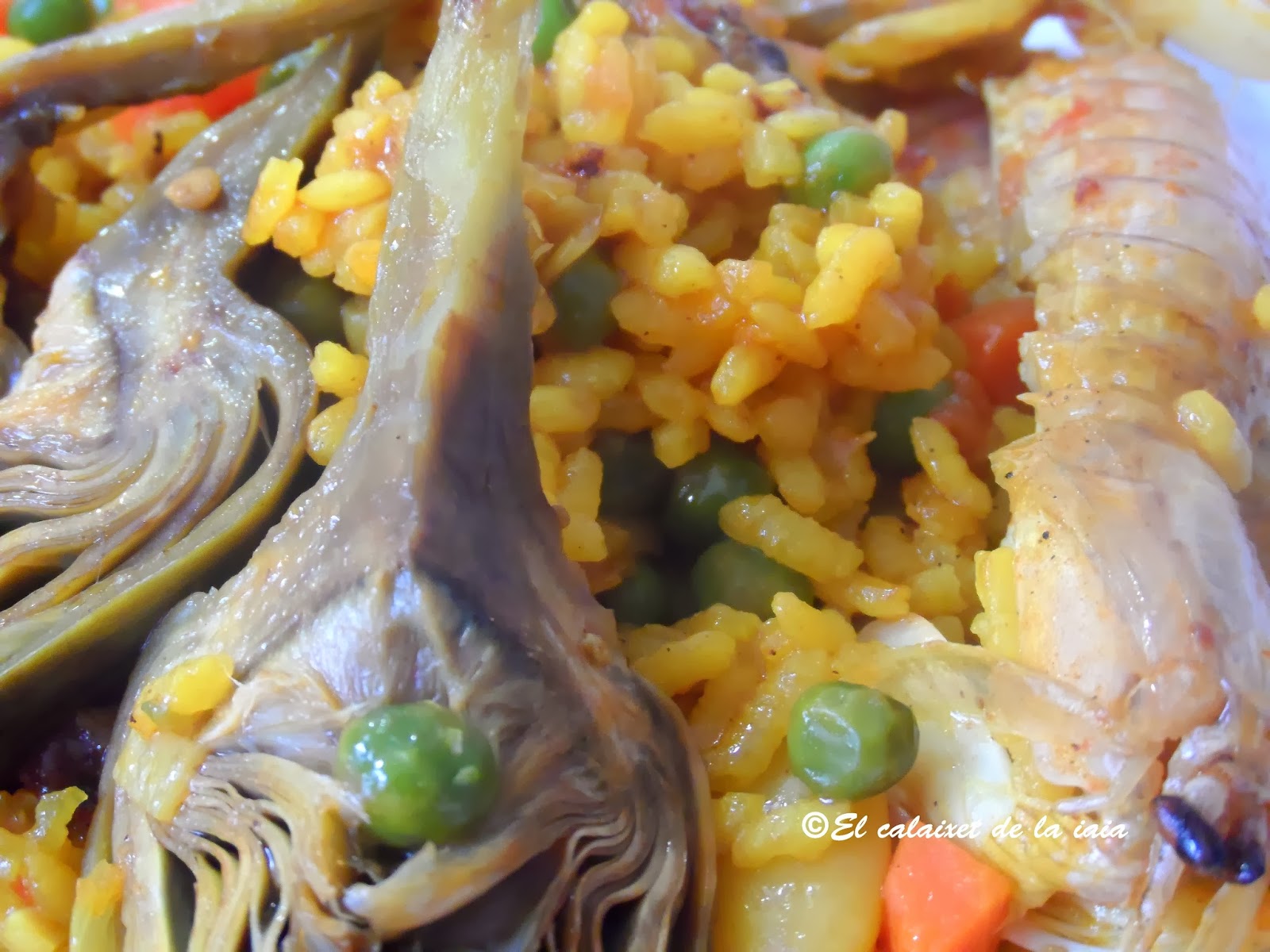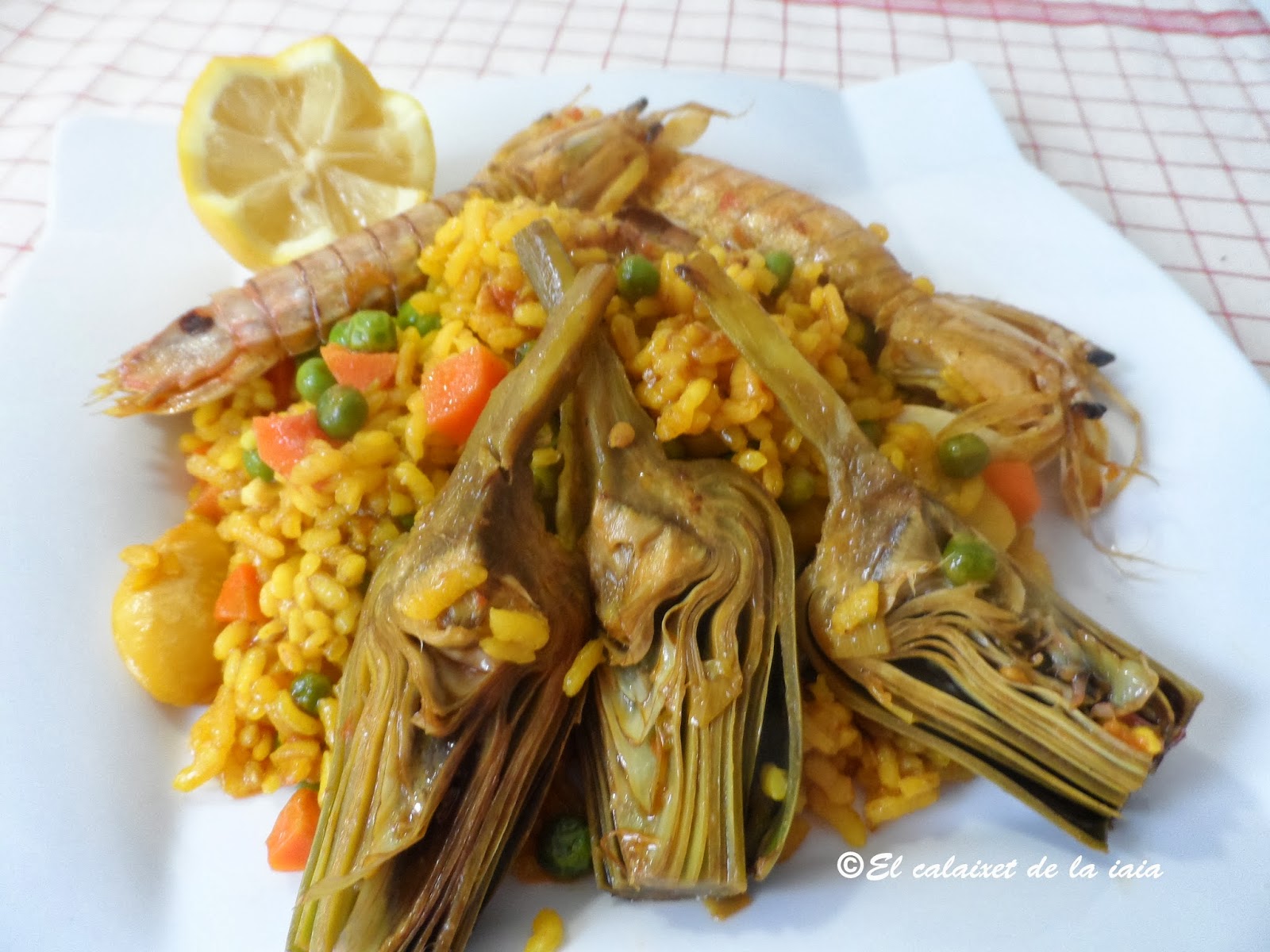 En la Edad Media se creía que la alcachofa era afrodisíaca y que no era bueno consumirla en exceso. La alcachofa era consideraba, debido a su alto precio, una comida de ricos, hoy la voy a cocinar con galeras que eran llamadas el marisco de los pobres… vaya mezcla de estatus no? Ahora las galeras está muy codiciadas, por fin han descubierto muchos restaurantes que sirven para mucho mas que para un fumet, pero en contra, nos han fastidiado a quienes la venimos usando de toda la vida para cocinar porque ha subido escandalosamente su precio en el mercado. Decía la iaia que ¡menudas galeras traía mi iaiao Visantet del rancho! En mi casa, la iaia y mi madre cuando cerraban el puesto del Mercat del Grao pasaban por la pescadería, si habían entrado buenas galeras, ya las tenían reservadas y solían venir a casa con un buen puñado que hacían para la cena, con cebolla frita, mmm que ricaaas aún recuerda mi hermano JoseVi, como nos poníamos la boca, de chuparles las tripas jajaja.