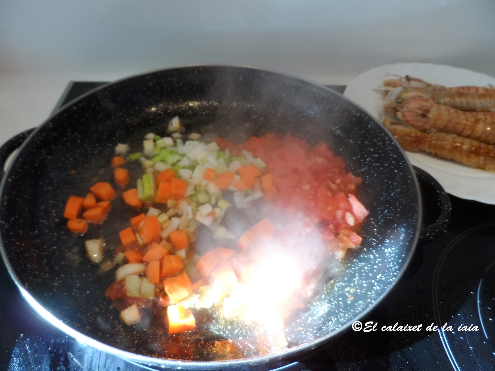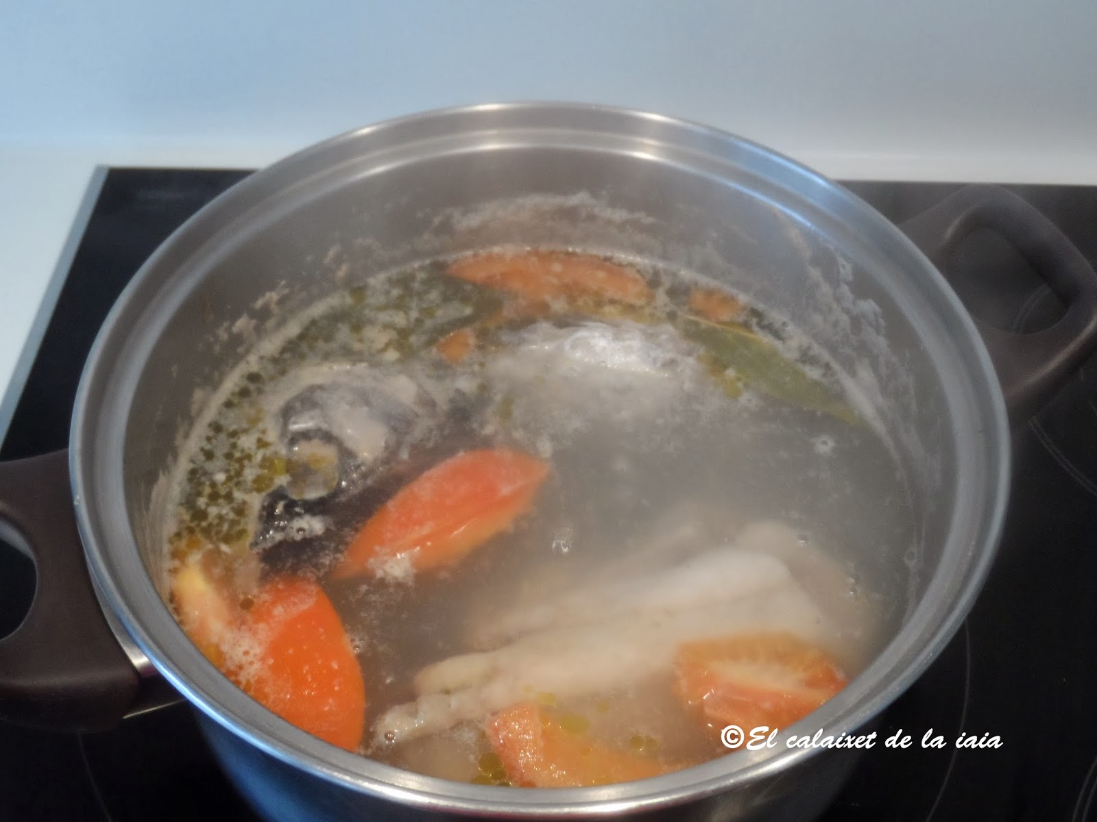 Si no tenemos fondo de pescado, habrá que hacer uno. Podemos hacerlo con caldo de moralla, como podéis ver aquí http://calaixetdelaiaia.blogspot.com.es/2014/03/caldo-de-morralla-fondo-de-pescado.html,