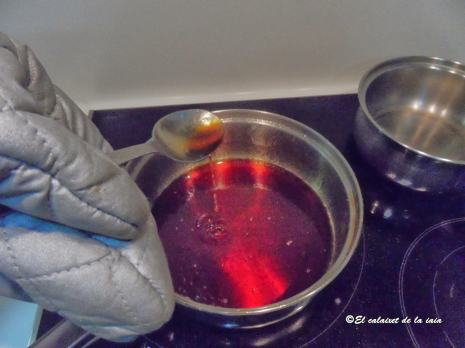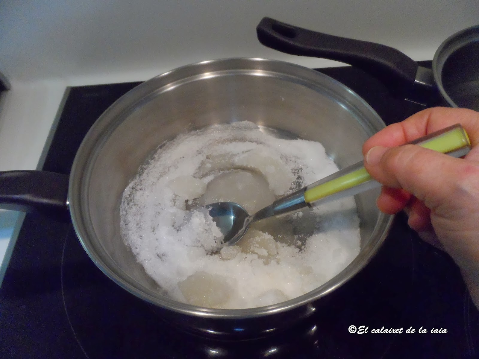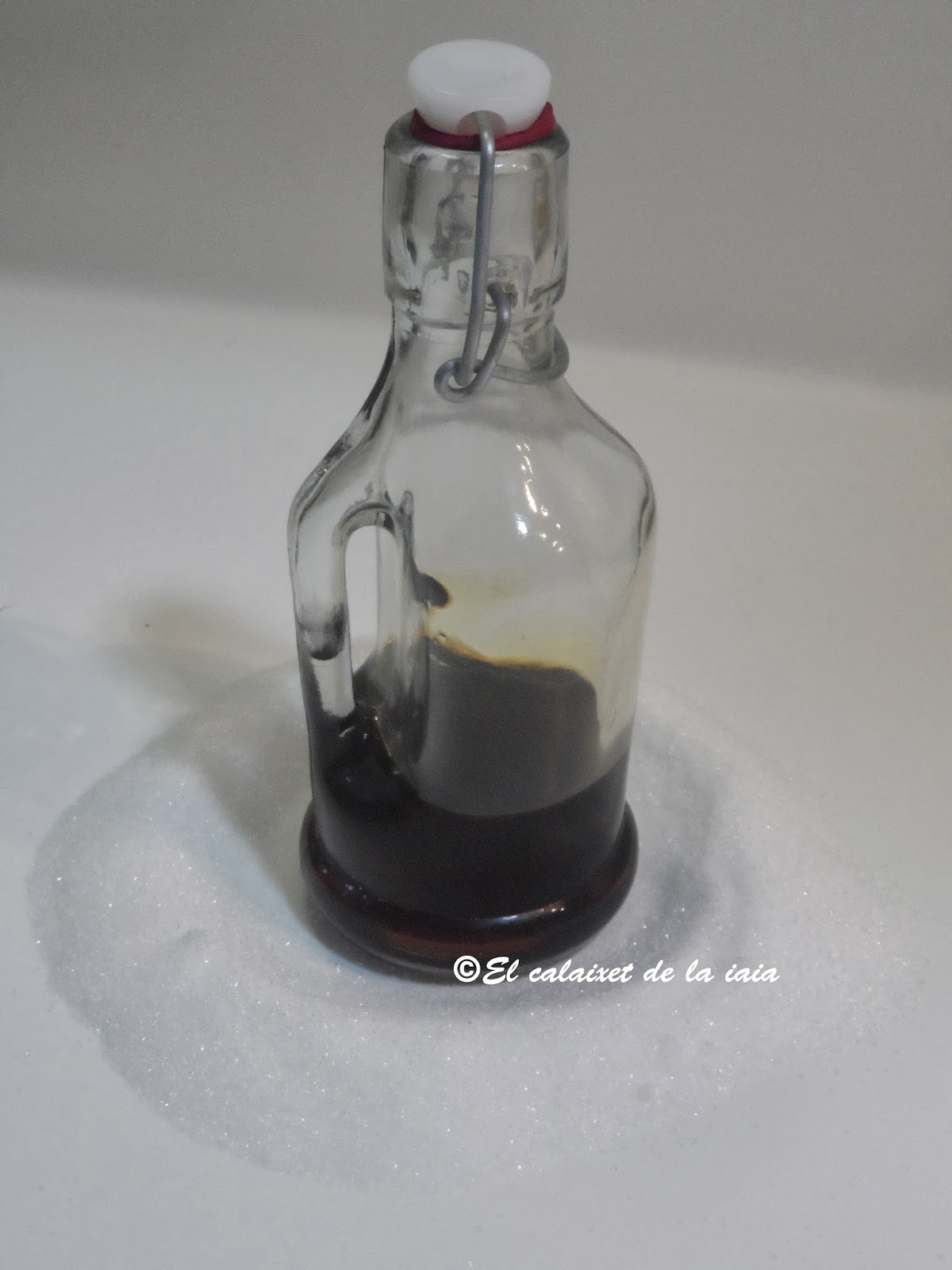 Es el caso del caramelo líquido, está bien porque te ahorras un rato de cocina, y la posibilidad de obtener una quemadura, pero ¿y el sabor?. No me gusta nada el sabor que tiene el caramelo líquido embotellado, y eso que he probado todas las marcas posibles, el único que me gustaba era el que acompañaba al «Flan El Chino Mandarín», (en mi casa, de flan en polvo, no se usa otro, desde que ya lo hacía mi iaia y mi mami y lo sigo usando hoy día, pero sólo encuentro en los mercados,) pero ya hace mucho tiempo que no viene el sobre de caramelo en la cajita, así que desde hace años, lo hago en casa, lo embotello y lo tengo en la alacena, siempre listo para añadir a un té, una cuajada, unas nueces con queso fresco, decoración de dulces, o preparar un pudin o flan, bien de huevo, o de sobre.