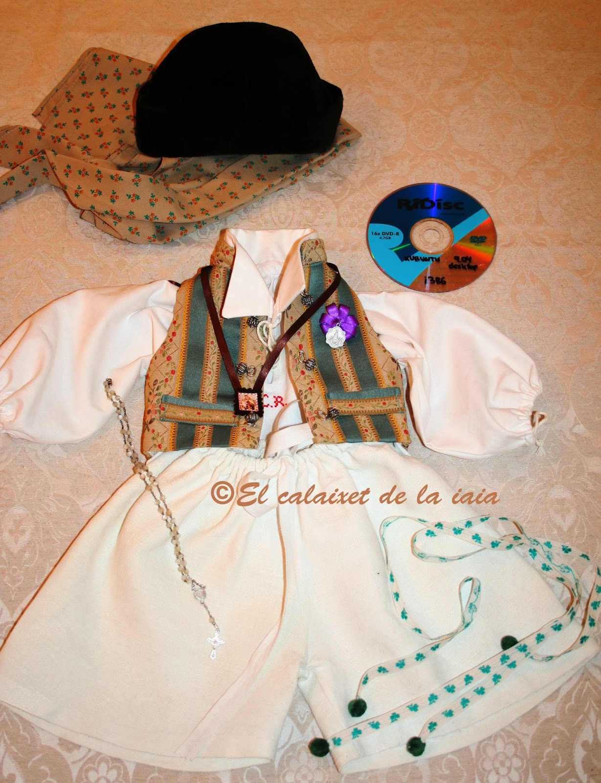 El año pasado cosí y regalé un traje de saragüells a un bebé muy, muy especial, para que con tan solo un mes, hiciera su primera ofrenda a la Mareta. Tuve que comprar el lino de anticuario por internet y fué unos de los trabajos mas difíciles de hacer, ya que lo tuve que coser sin poder realizar una sola prueba, y cuanto mas chiquitín mas complicado, apenas era una miniatura de todo, pero disfruté comprando y eligiendo las telas para las distintas piezas, muchísimo.