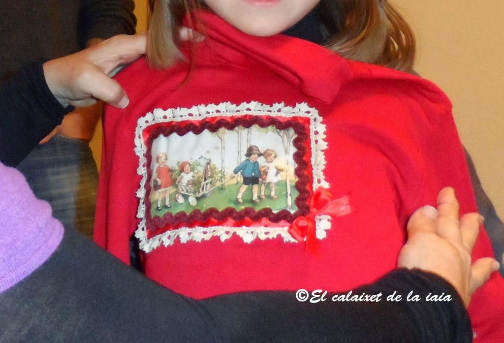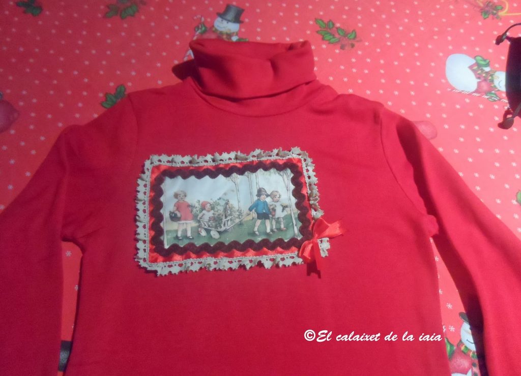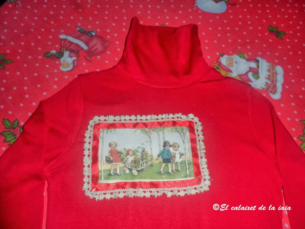 Salí a comprar el jersey pero debido a las fiestas navideñas, estaba todo abarrotado de gente, se me hizo muy tarde y no llegue a tiempo a la mercería, por lo que no tuve mas remedio de vuelta casa, que ponerme revolver entre las cajas de cintas, puntillas e hilos,a la búsqueda de lo que necesitaba, tarea nada fácil porque tengo tantos retalitos que podría montar una mercería según mi marido…jejeje y tiene razón, es mi debilidad, me encantan toda clase de botones, abalorios, encajes, terciopelos, rasos…