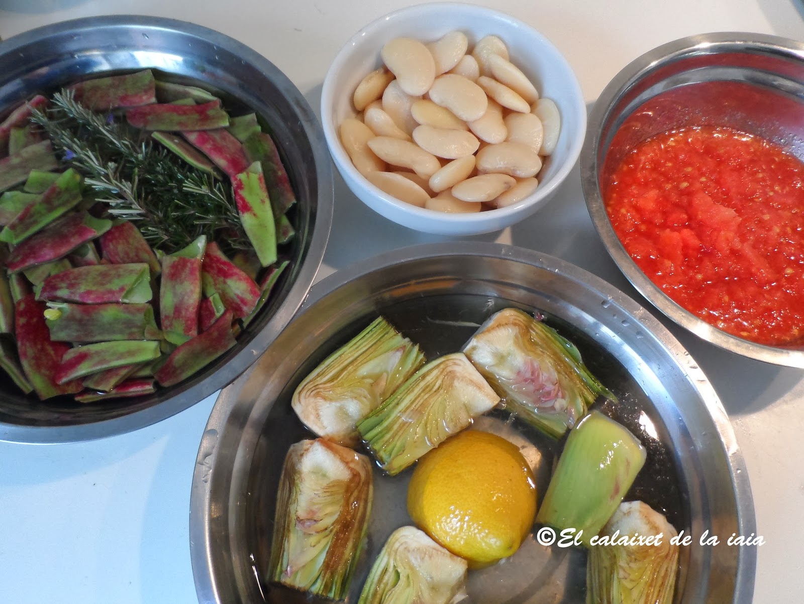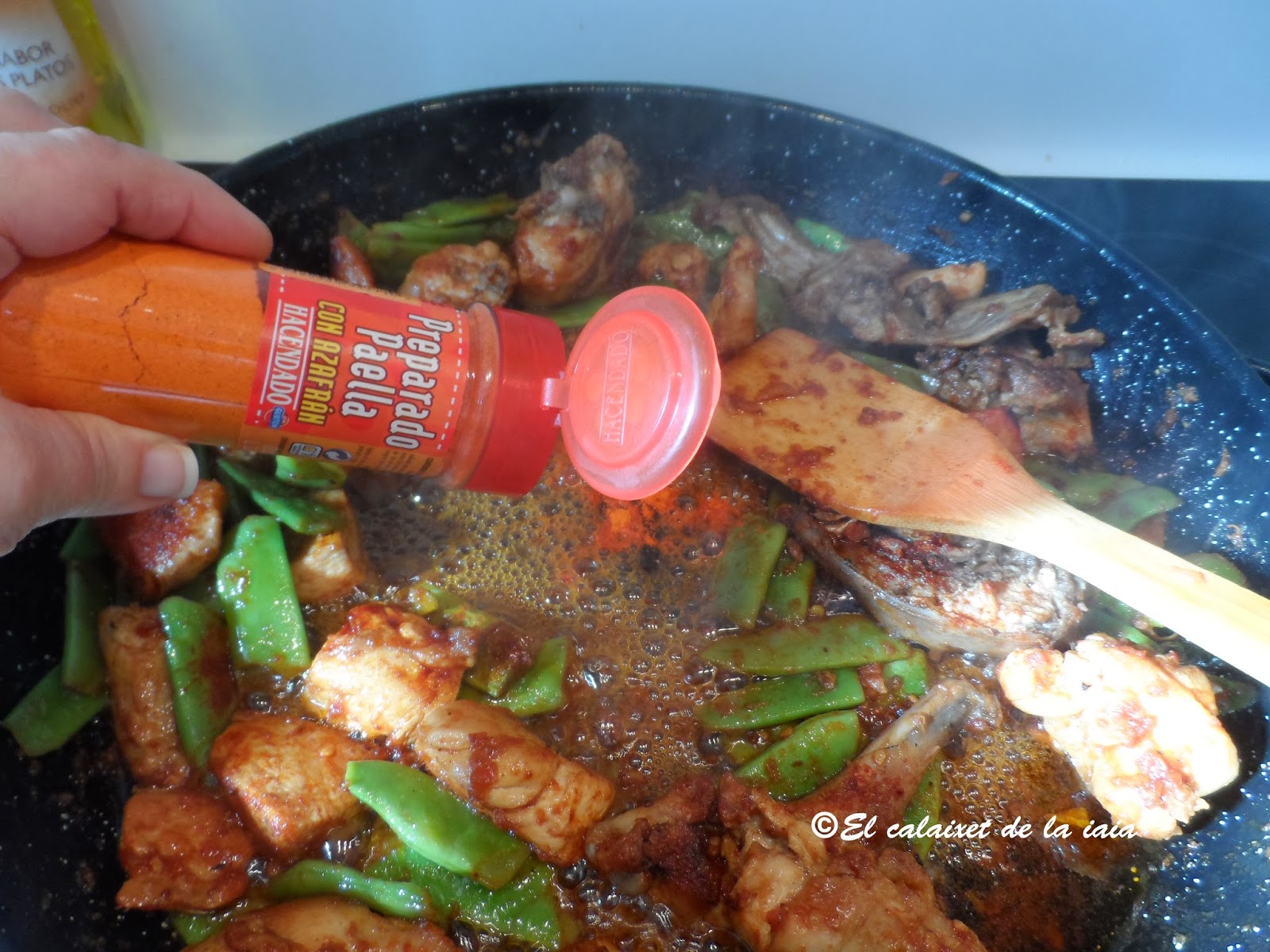 Y no una sola vez, sino varias, pues cuando he viajado con la idea de hacerla y me he ido con la paella detrás y todos los ingredientes, incluído el garrofón seco y el romero, siempre olvido la» bajoqueta y, o el rojet» 😞