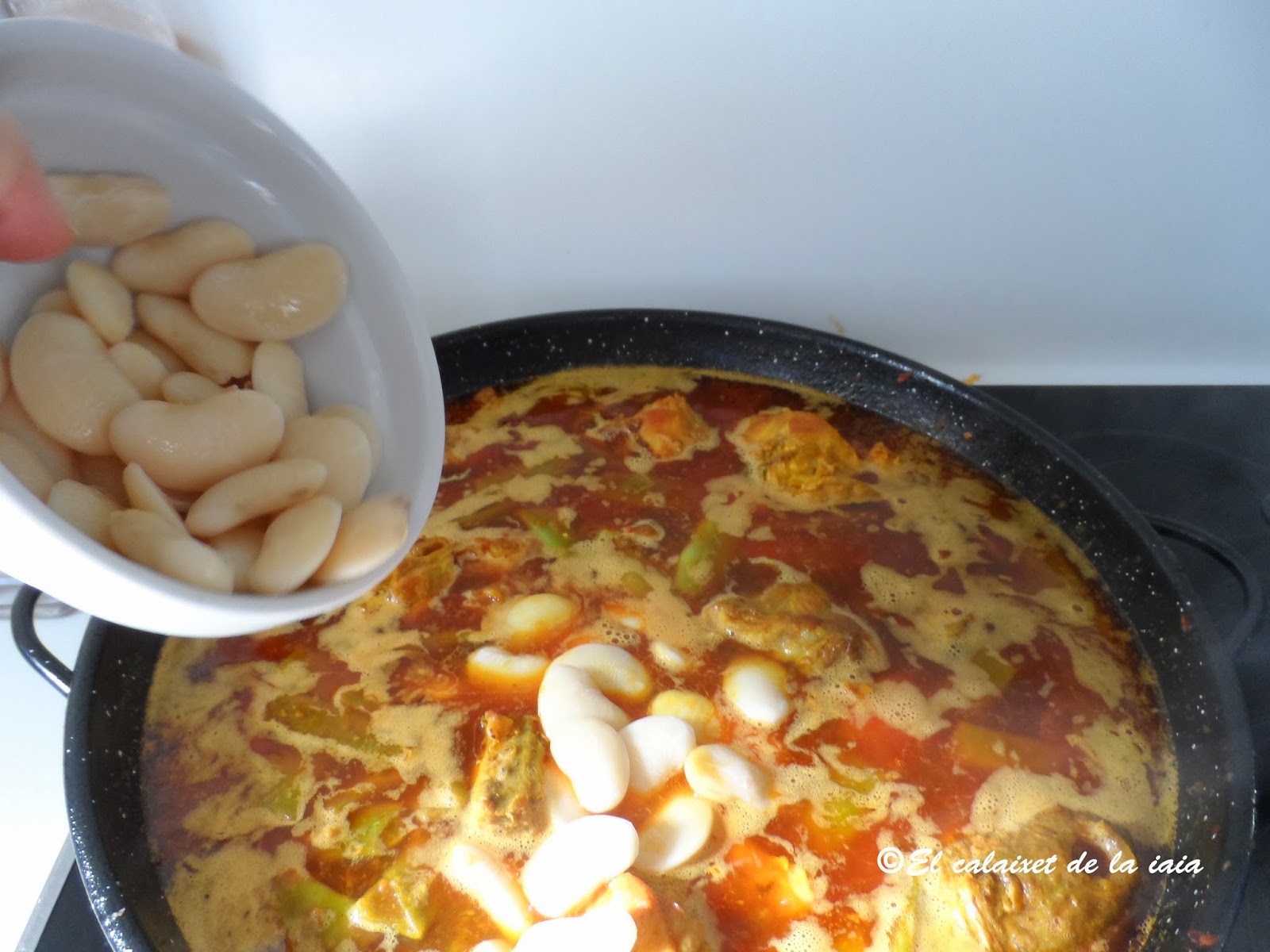 Opino que no hace falta ser mas papistas que el Papa, y no es justo que aquellos que no se aclaran con el control del fuego… o quienes viven muy lejos de «La Terreta»(tengo una amiga que vivía en Pittsburgh, Pennsylvania, que se llevó su paella detrás, cuando se marchó a vivir allí por trabajo, y otra en Marbach am Neckar, Alemania, que igual, y que cada vez que recibe visita de familiares y amigos pide productos de nuestra tierra), y que no pueden disponer del método adecuado para hacerlo, se tengan que privar de comer un arroz que le recuerde a su tierra, aunque no esté cocinado como marcan los cánones. Darse una alegría de vez en cuando y comer un arroz que le recuerde a una paella… os aseguro que es «lo mas» para quienes llevan muuuucho tiempo fuera de España, así que no seré yo quien se ponga tiquismiquis, y si puedo ayudar a darles una alegría, por descontado que lo haré, con deciros que yo les entiendo, porque en mi caso he preparado fuera de Valéncia y de la península, paella con judía boby, por no encontrar otra donde estaba, y no puedo ni con la verdura congelada, no con la envasada, de no ser que no quede absolutamente ninguna otra solución claro),