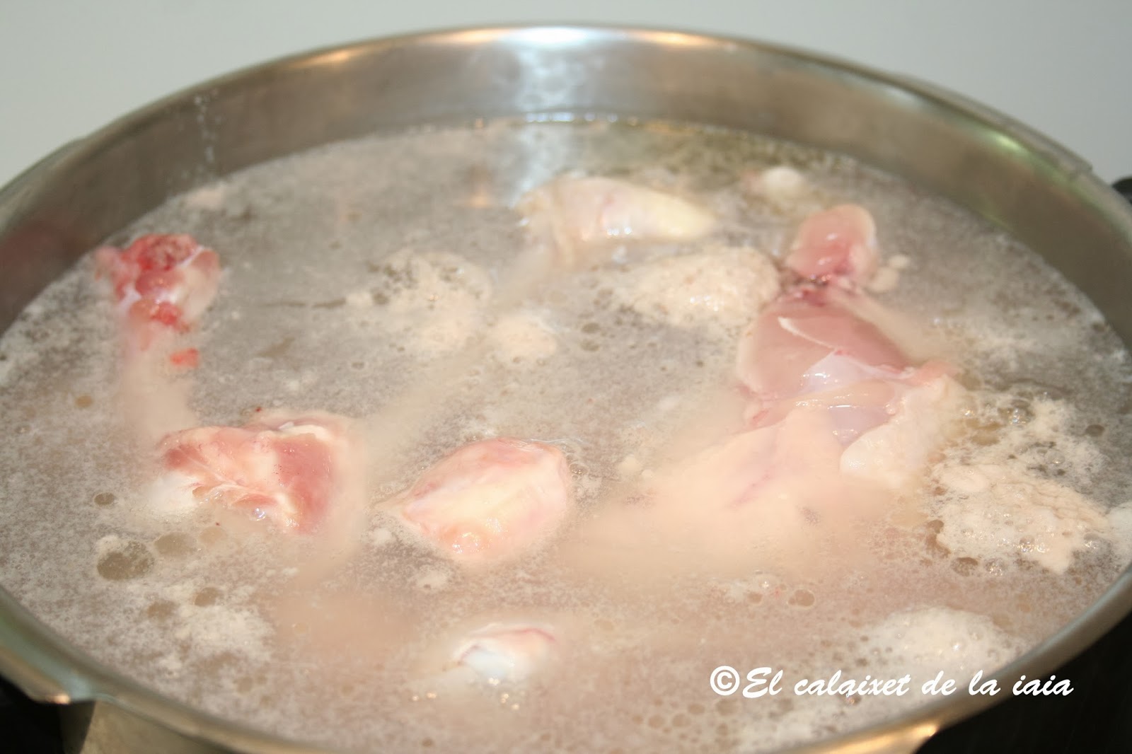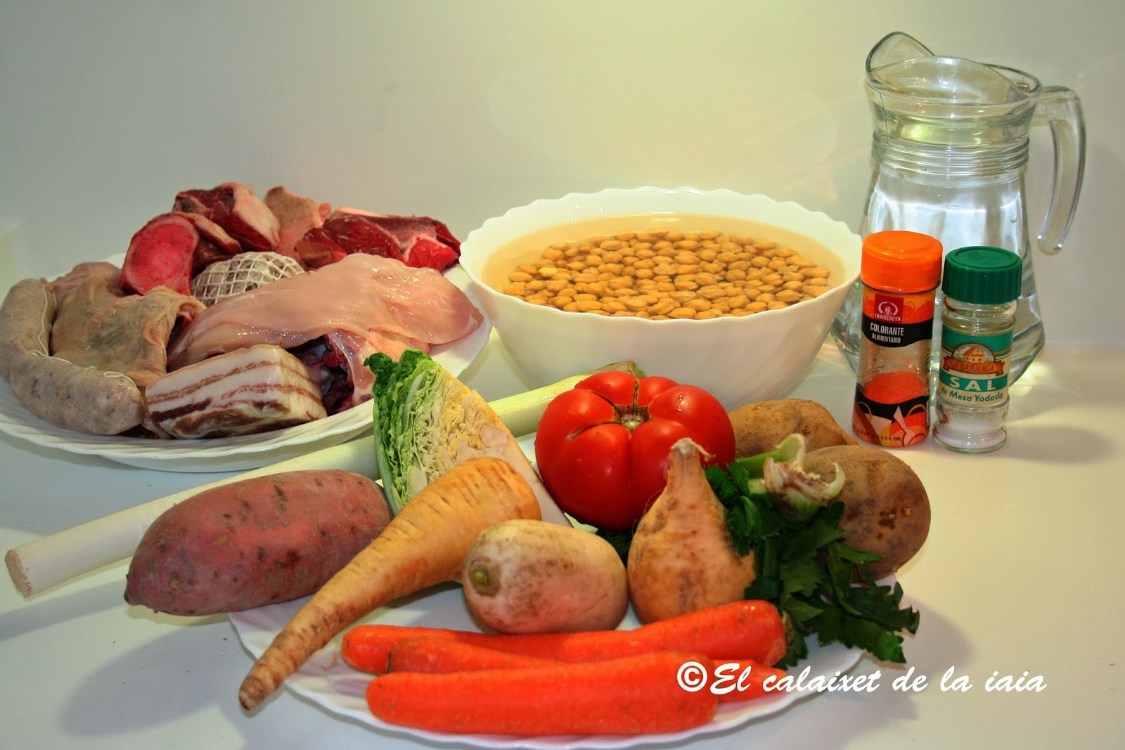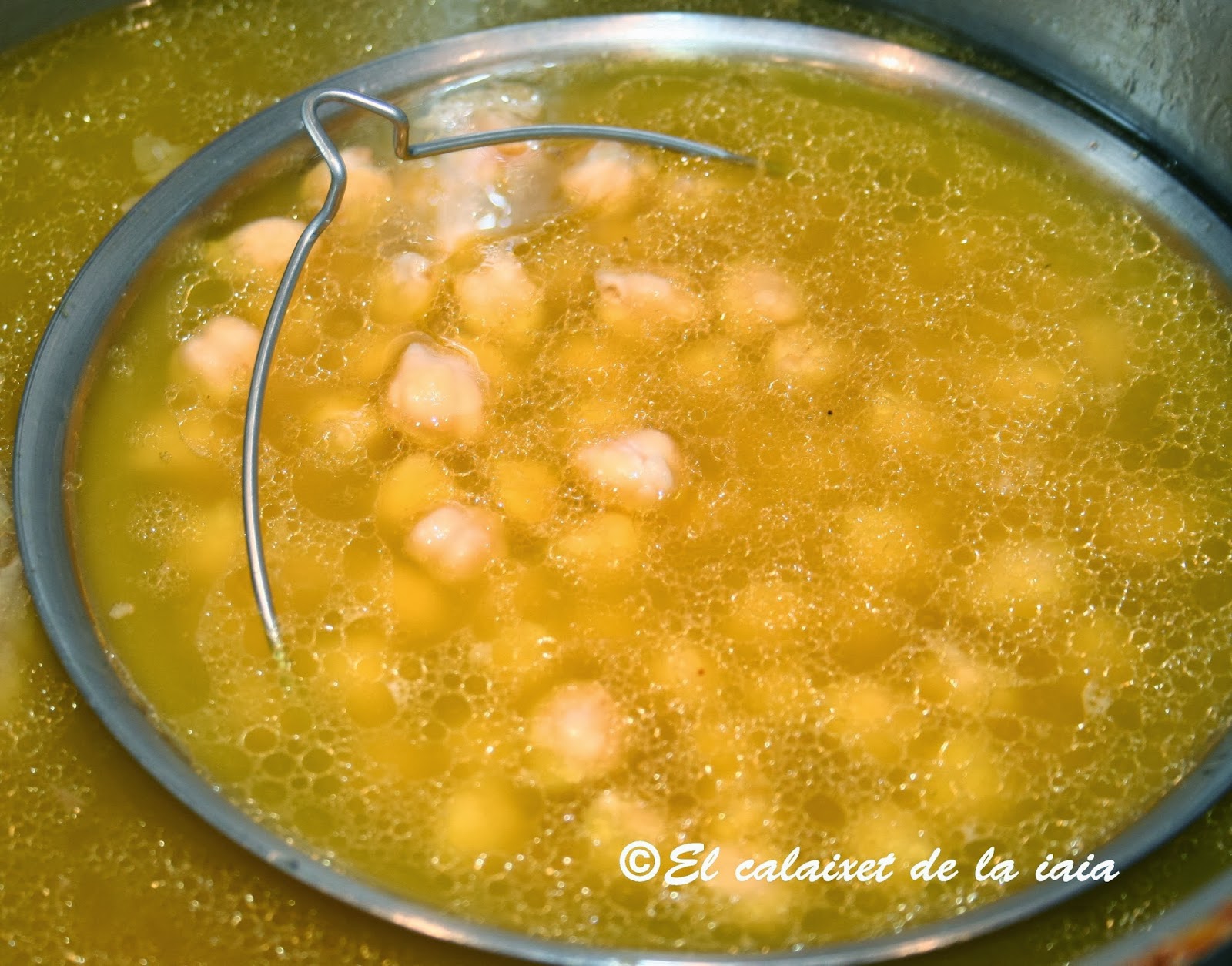 Lo tradicional es cocinarlo en este tipo de olla, o la más grande que tengamos, yo lo hago así cuando estoy en el pueblo, hace frío y puedo cocinar en la estufa de leña, sale riquisímo, al igual que las lentejas, el potaje, el hervido…mmmm TODO sabe ,mucho mejor cocinado así. Pero aquí en Valencia, lo cocino con la vitro y en olla rápida.