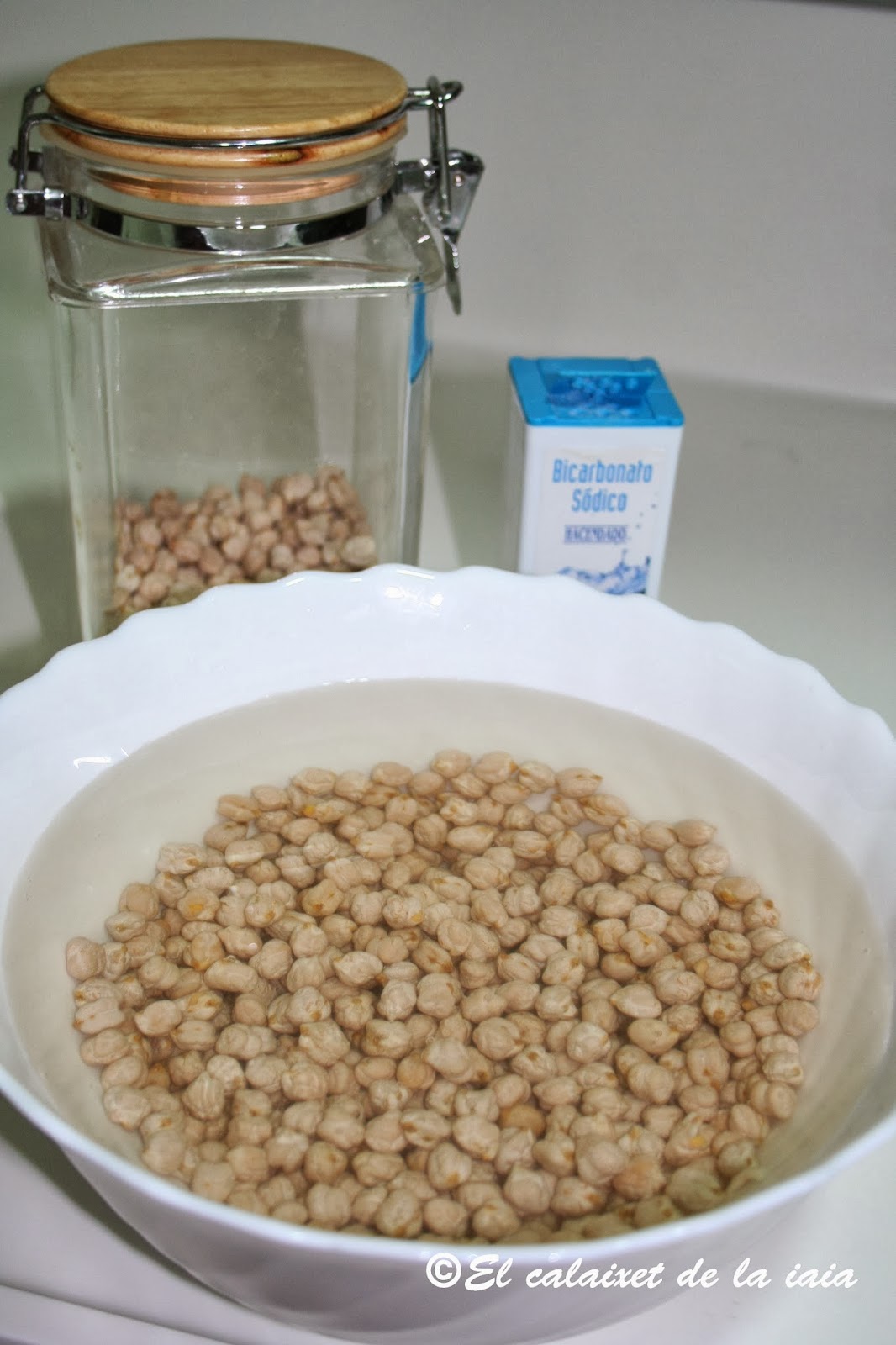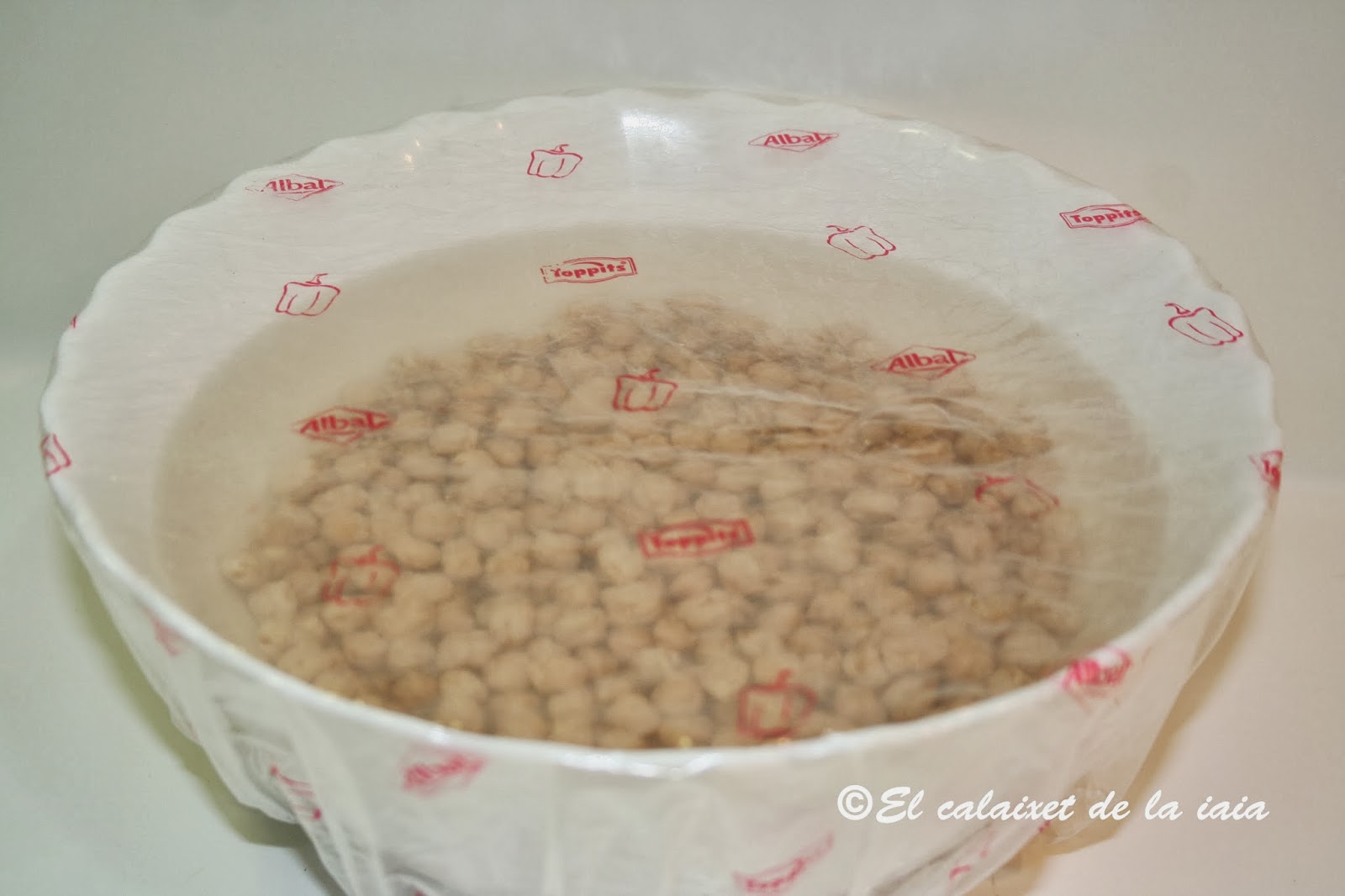 La noche antes, ponemos a remojo en agua fresca los garbanzos ni fría, ni caliente, una media de 12 horas. Podéis usar el tipo de garbanzo que os guste, pero los mas adecuados para esta receta en mi opinión, son los garbanzos lechosos, aunque con los pedrosillanos también sale brutal, así que a vuestro gusto.