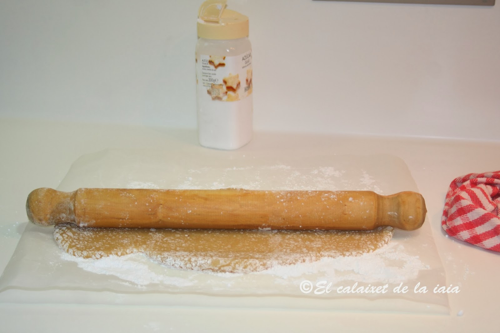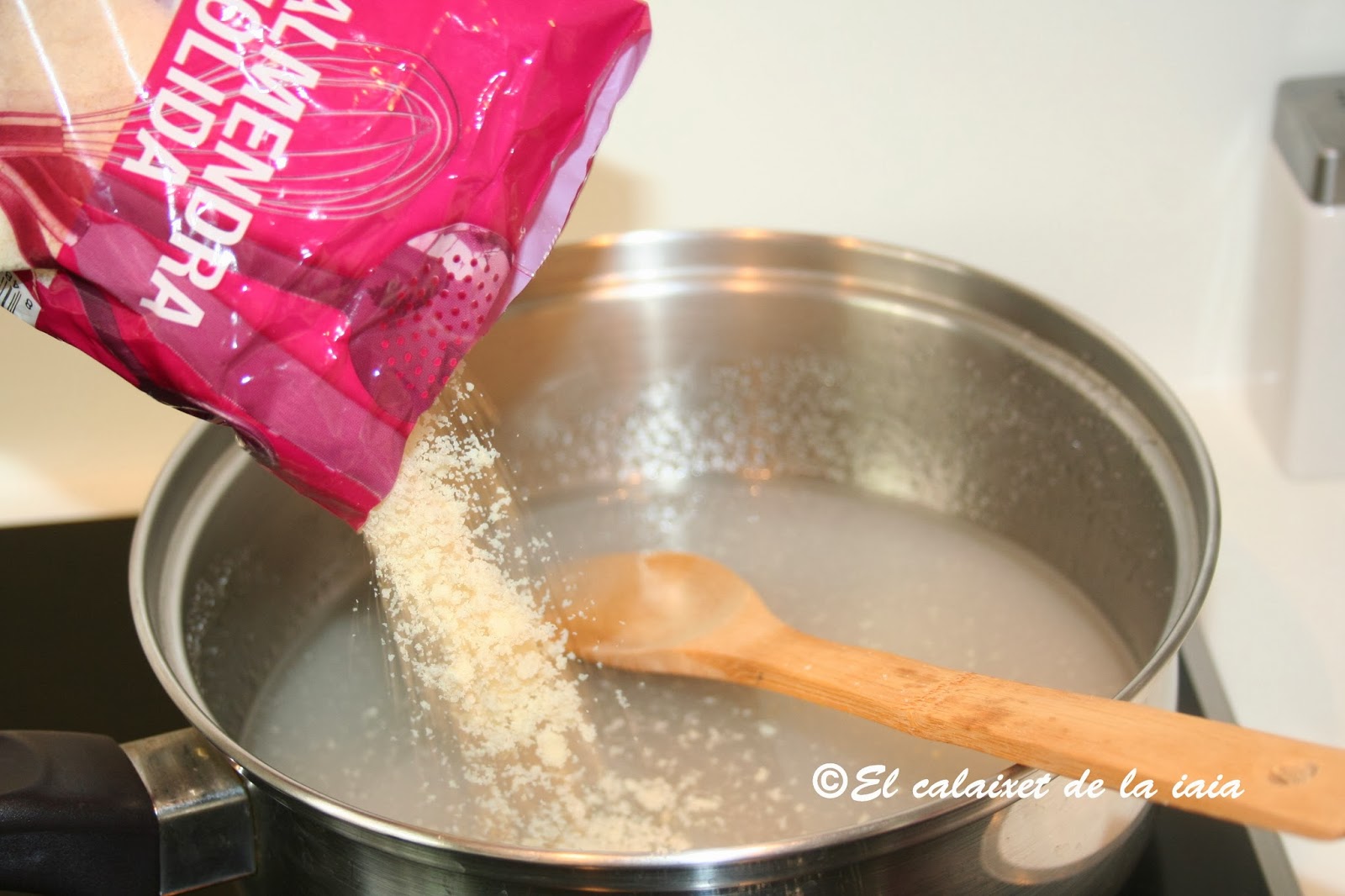 Se trata de un mazapán, como decía mi iaia Conxeta «per à pobres». Los hacíamos para Todos Santos y también para Navidad, cuando yo era muy muy pequeñita. No se porqué, muchas de las recetas, se dejaron de hacer con los años, menos mal que con mi insistencia, conseguí que la iaia me las fuera diciendo y apuntarlas en mi libretita.