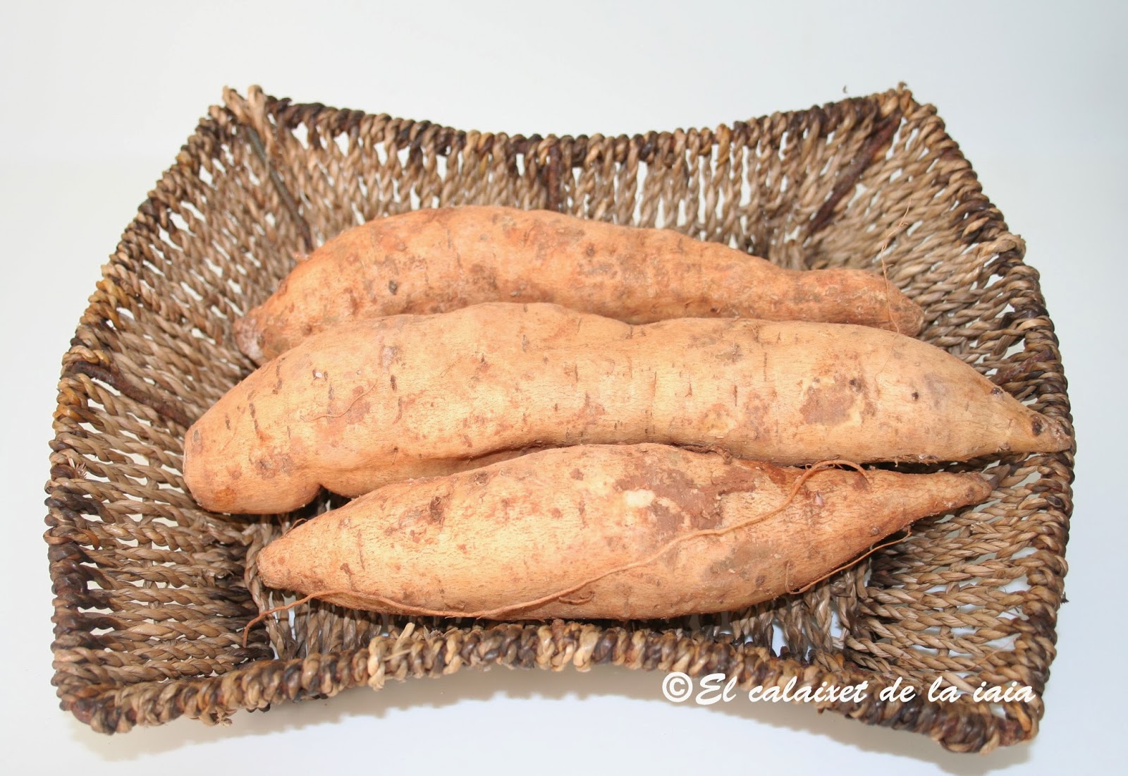 Me encanta poner el rojo en el «putxero», y para el mazapán utilizo el blanco, a mi marido le gustan mucho simplemente asados en el horno y en el pueblo en el horno de la estufa de leña. A veces los cocino como relleno de pasteles. «Els pastissos de moniato…mmmm xé que bóns», a ver si tengo un rato, preparo unos cuantos y os subo la receta.