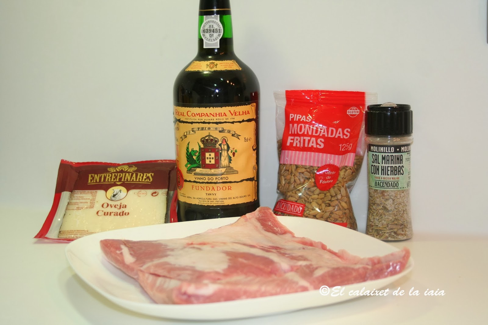 Milfulles de secret, amb formatge curat i reducció d´Oporto.