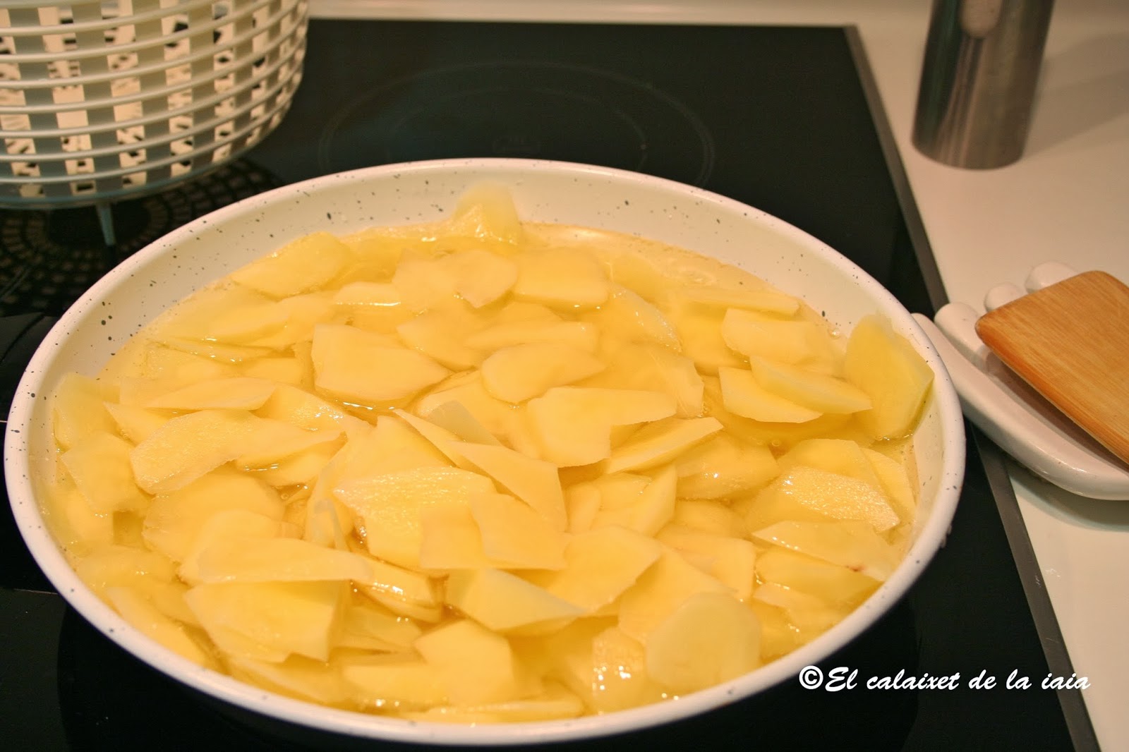 Y lo que sí que me he dado cuenta es que me parece que yo frío las patatas y la cebolla con muchísimo mas aceite…
