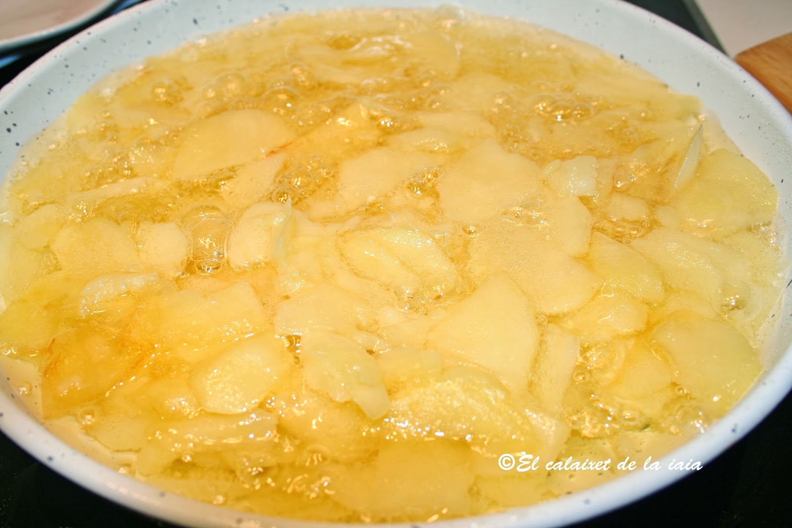 la patata la haremos a fuego suave para que quede bien cocida por dentro y dorada por fuera