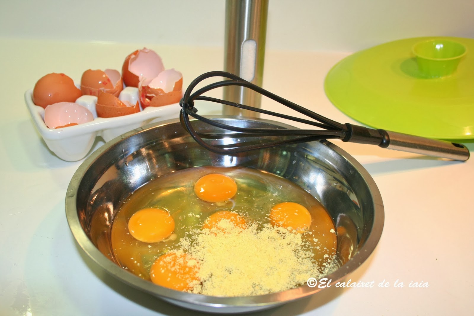 Hoy, los huevos son de gallina de corral, pero comprados, ya que no me quedan de las gallinas que crían y cuidan mi nuera, hijo y nietas, en la sierra de Albarracín, madre Dios… eso si que son huevos, con deciros, que cada día sacan a las gallinas a tomar el sol y pasear entre el césped natural de la montaña, ya os podréis imaginar que color, sabor y olor, tienen esos huevos.