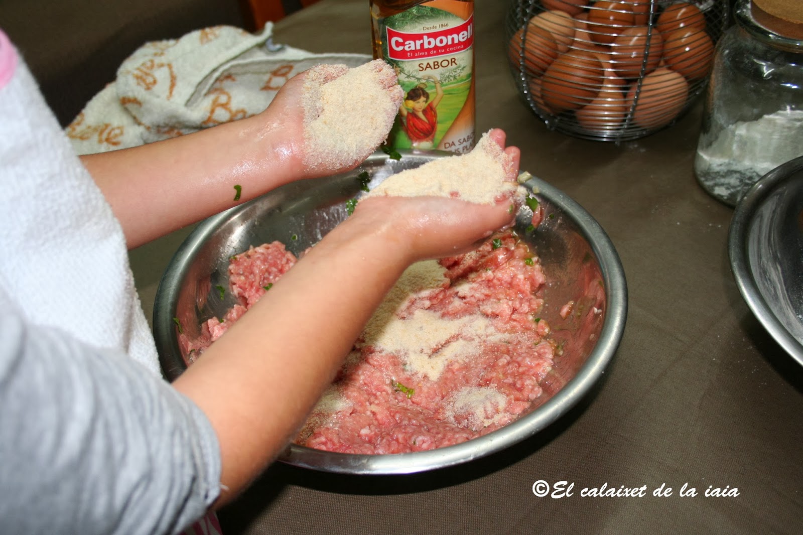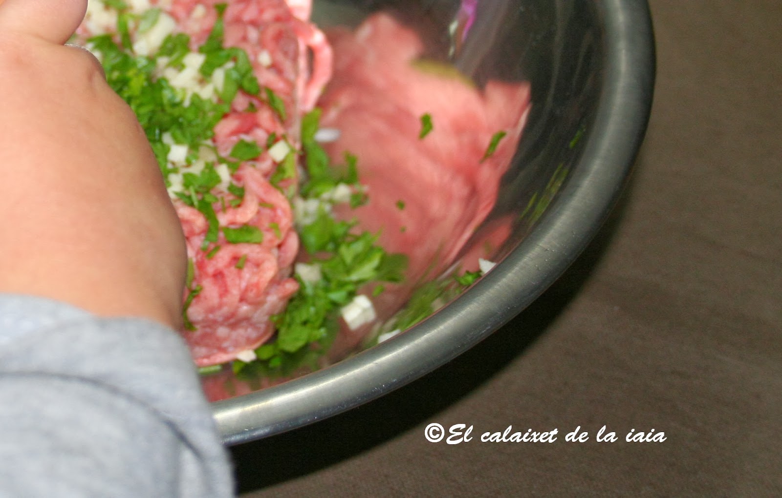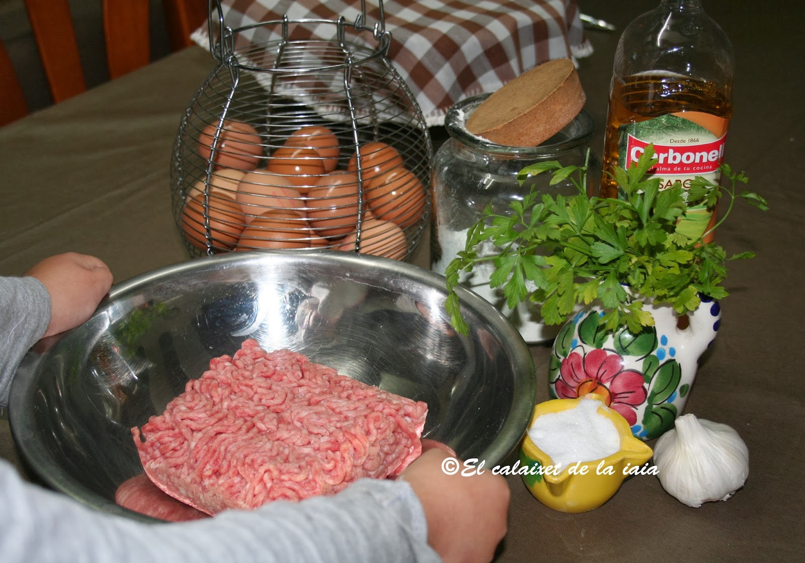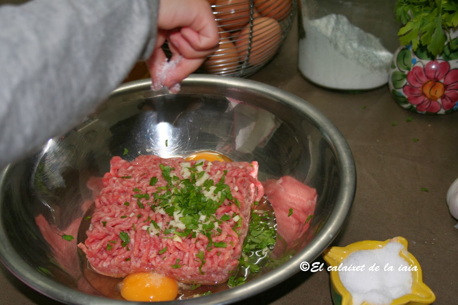 De nuevo he tenido pinche de lujo, mi princesa se ha colocado el gorro y delantal y ha metido las manos…en la carne. Para cinco comensales, necesitaremos;