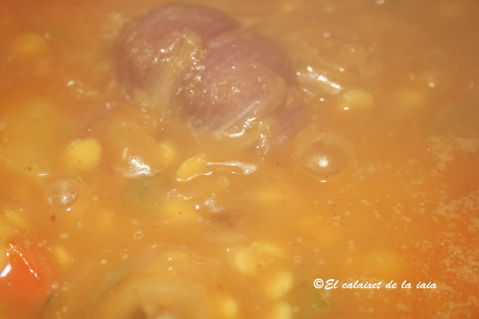 y cuando de unos hervores, incorporamos las lentejas y el laurel