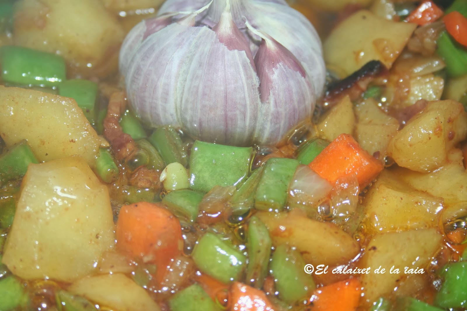añadimos la cabeza de ajos, dando previamente un corte vertical en cada diente con el cuchillo