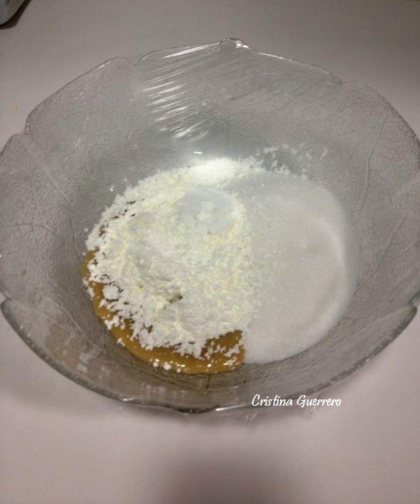 Incorporamos al bol los tres ingredientes….. pero ojo.. ¡NO REMOVEMOS!