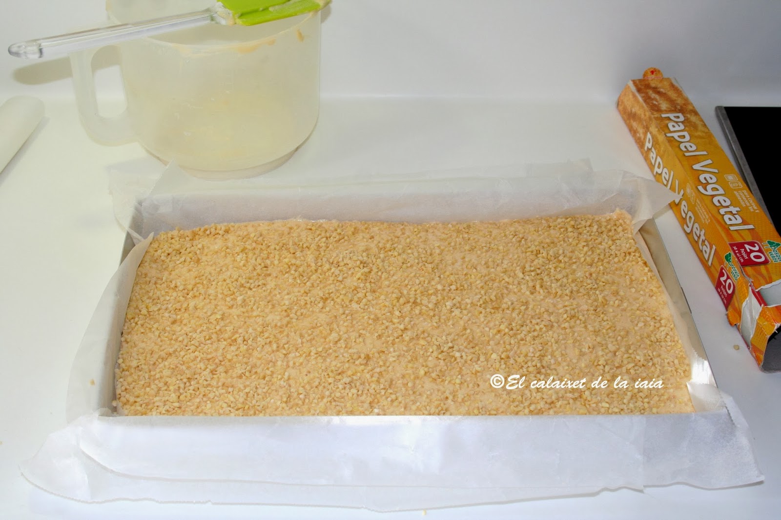 Preparamos un molde que sea ancho y bajo, con papel de hornear.