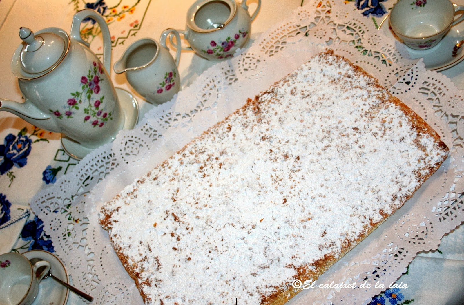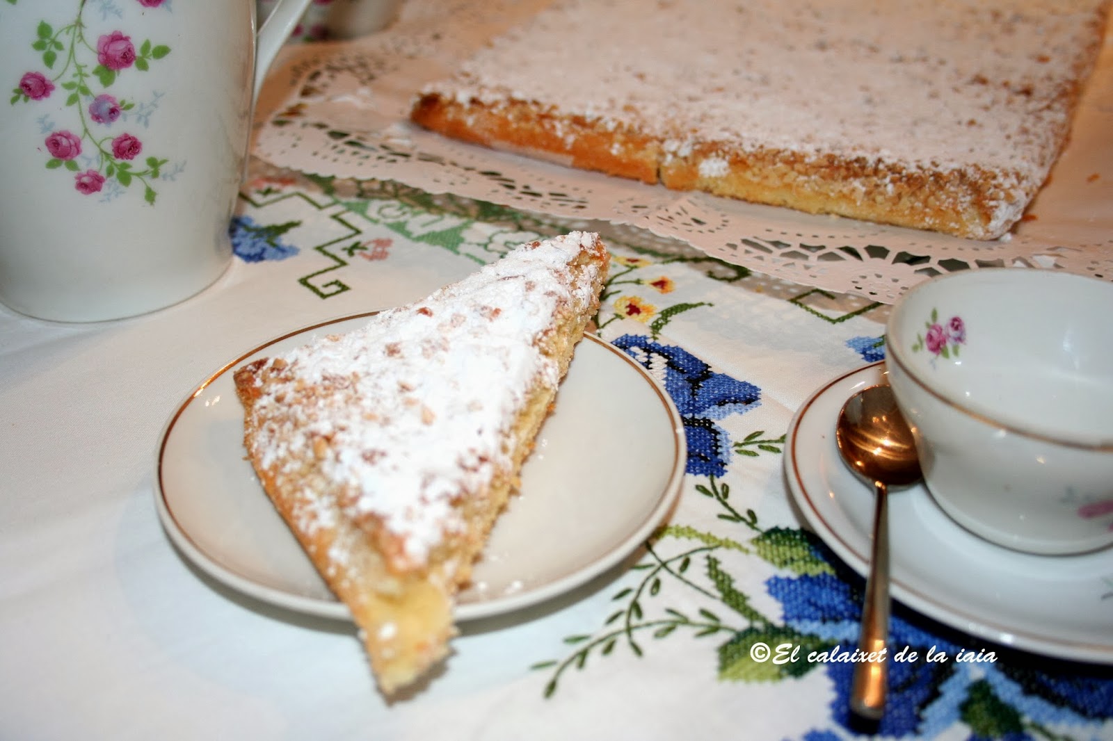 Por cierto, tengo una amiga que dice que le recuerda muchísimo a la tarta de Santiago, solo que ésta no lleva manteca y la de Santiago si y ésta tampoco lleva licor, ralladura de limón …ni canela. La de Santiago, la haremos otro día. La tarta de Santiago podéis verla si pincháis aquí