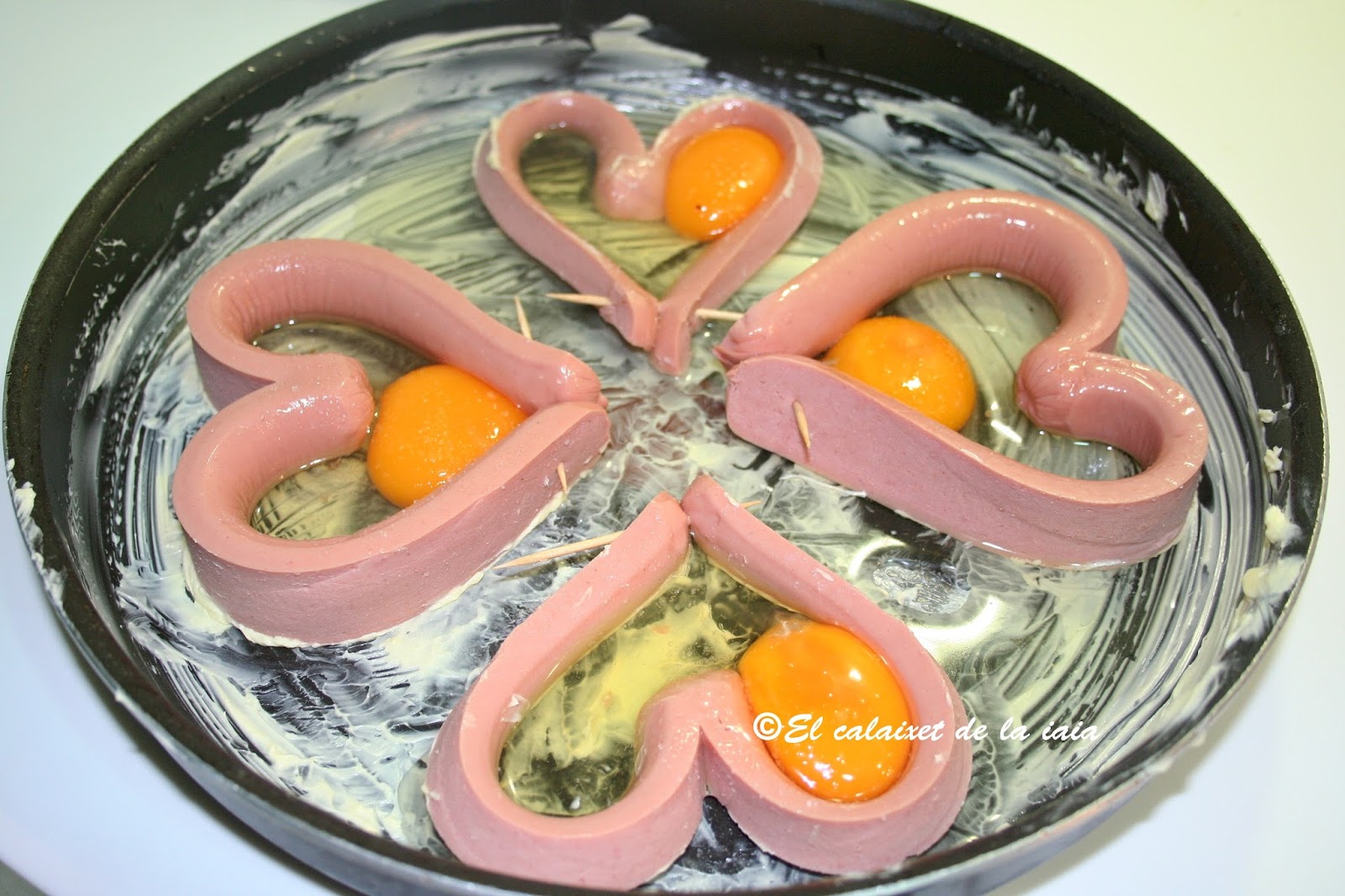 Hoy he tenido en casa a mi princesita y claro está… ha querido que cocináramos. Había preparado un puré de patatas con calabacín y zanahoria y no sabía que más hacer, así que dándole a elegir, se ha decantado por sus huevos corazón, un plato muy infantil que le encanta cocinar y mas aún… comer.