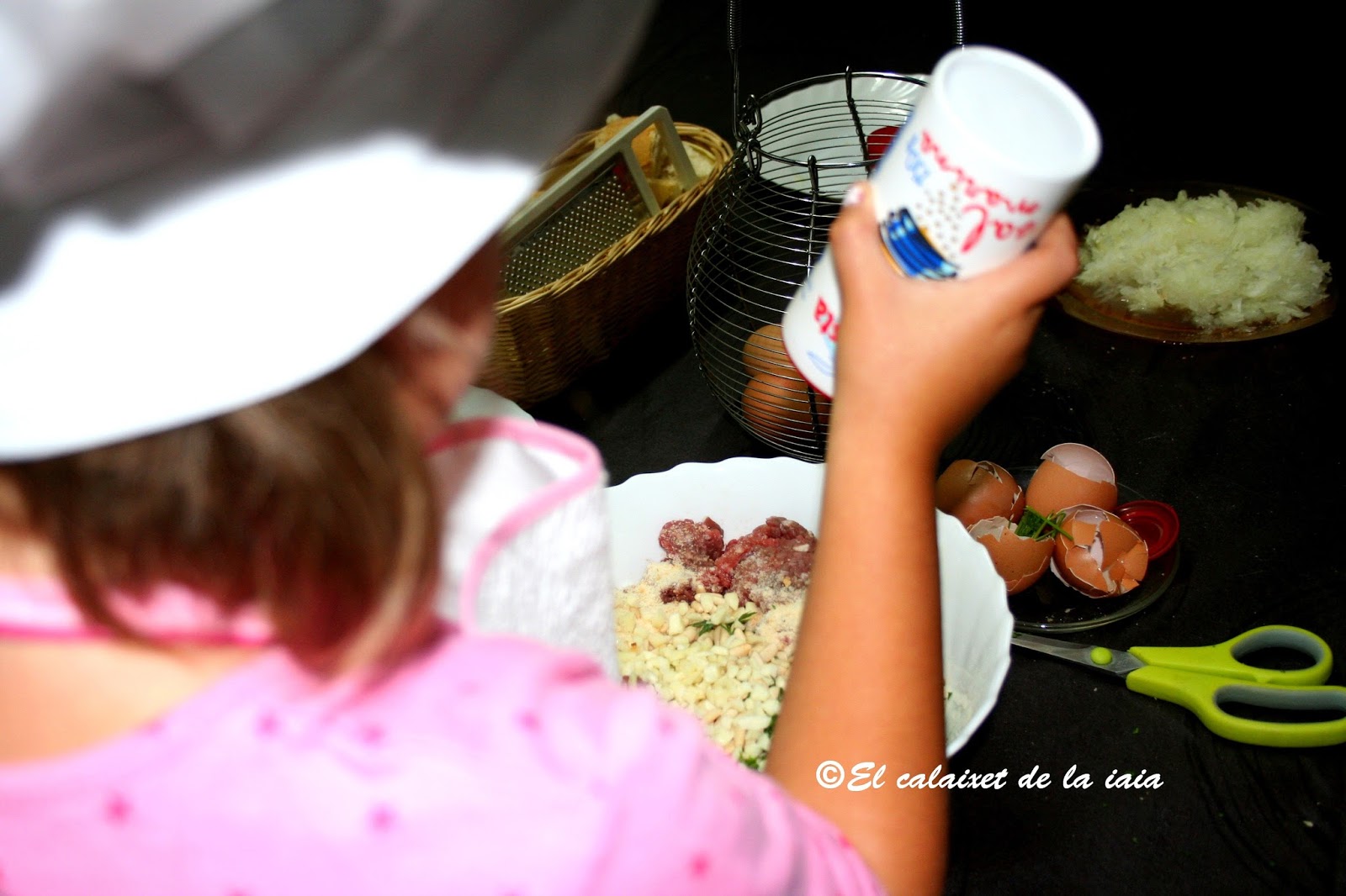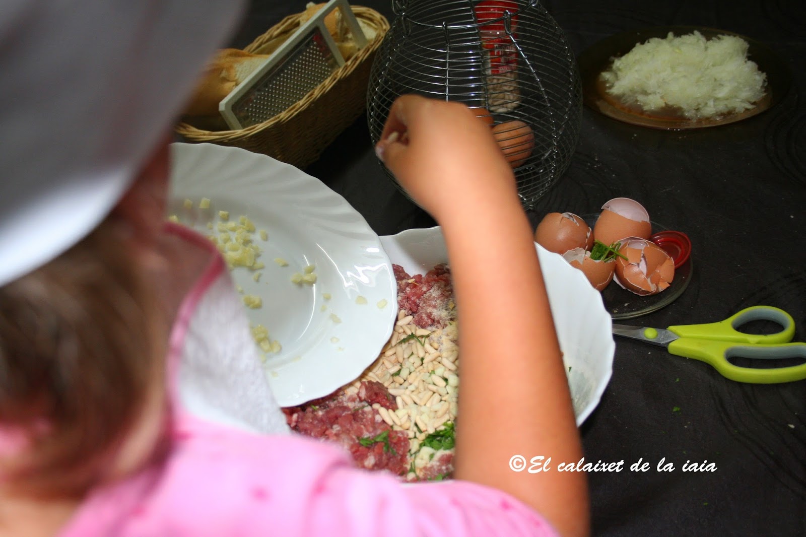 Mi pequeña me ha hecho humedecer los ojos. Estando amasando la carne, me ha dicho «¿sabes iaia? creo que hoy en el cielo estará la iaia velleta muy contenta, de ver que estamos haciendo las dos juntas su plato preferido» buffff que cosas tiene mi princesa……