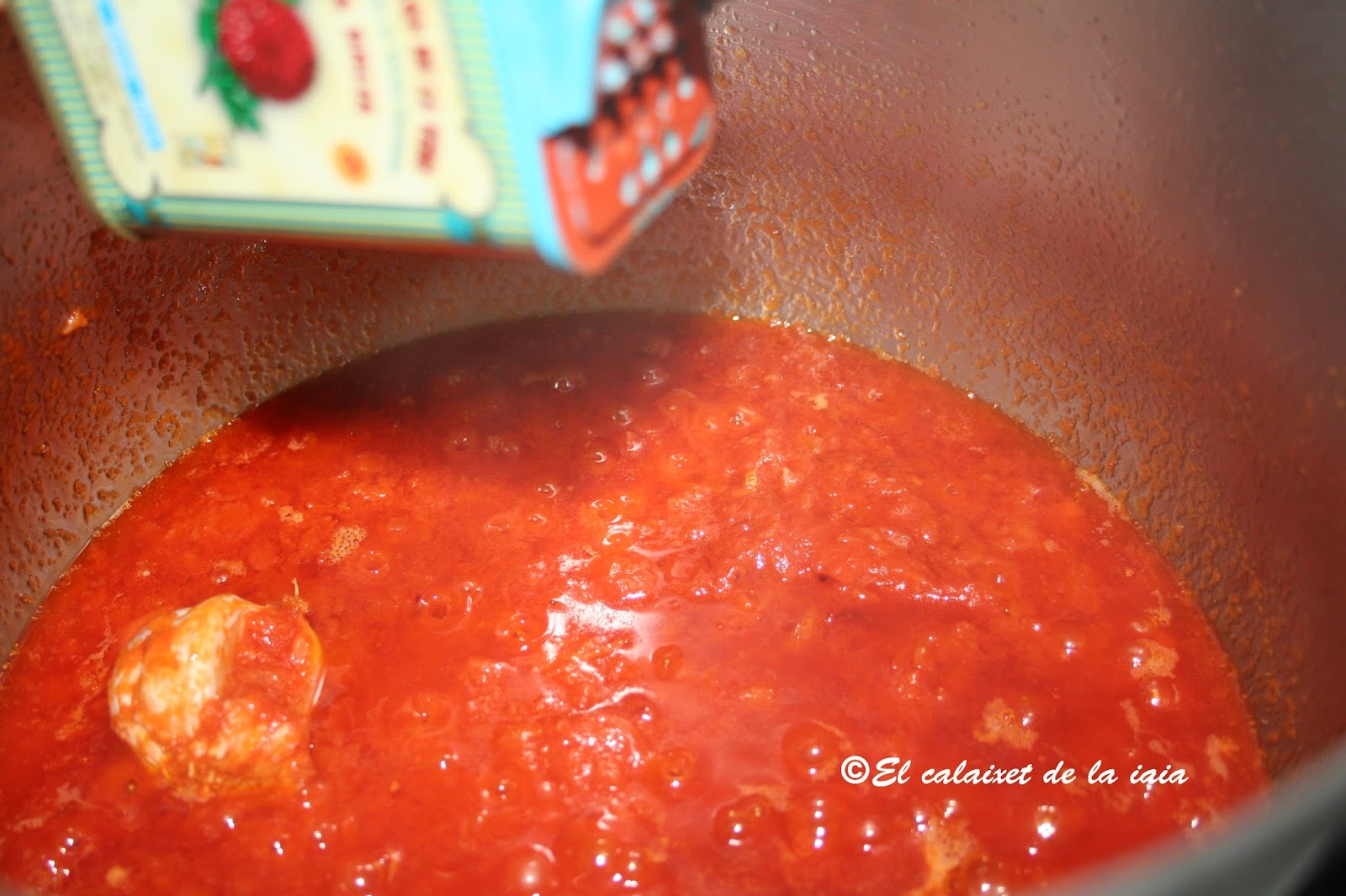 y cuando esté bien caliente doraremos en él les mandonguilles pero suavemente y solo por fuera,porque no han de quedar muy hechas, ya que luego les daremos un hervor en la salsa y se acabaran de cocer por dentro y por fuera