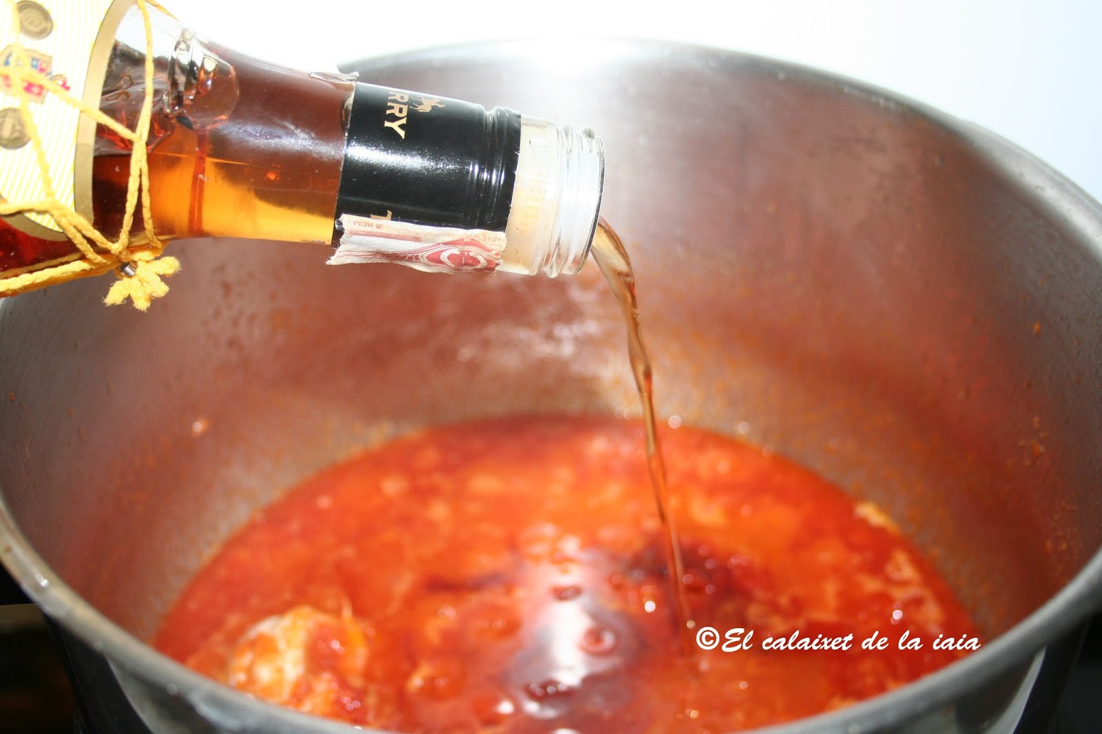 y enseguida, para que no se queme el pimentón, un chorrito de brandy