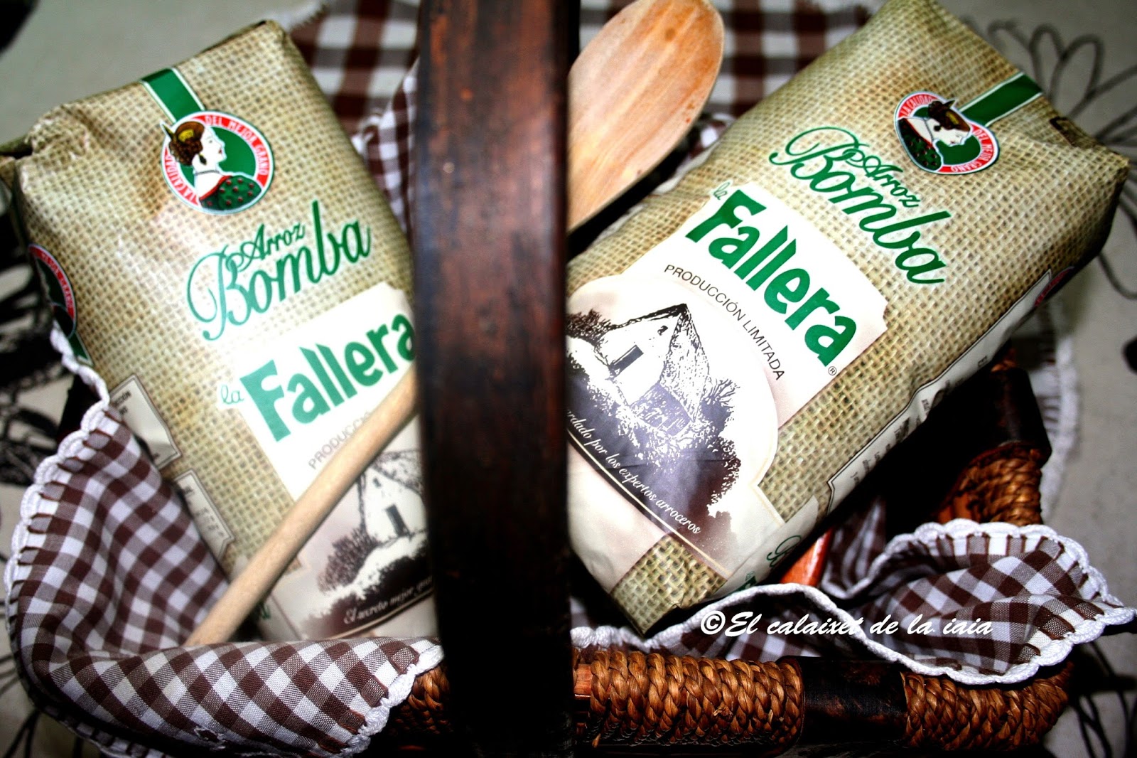 En éste caso, el arroz bomba de La Fallera es perfecto, ya que hay que tener en cuenta que es el arroz que mas absorbe los sabores, pero recordad que necesita mucha mas agua que el arroz redondo normal, ya que para su cocción es necesario añadir entre 3 y 3,5 partes de agua ó caldo por cada parte de arroz y necesita cinco minutos mas de cocción, el arroz redondo necesita doble y mitad de caldo para una paella.
