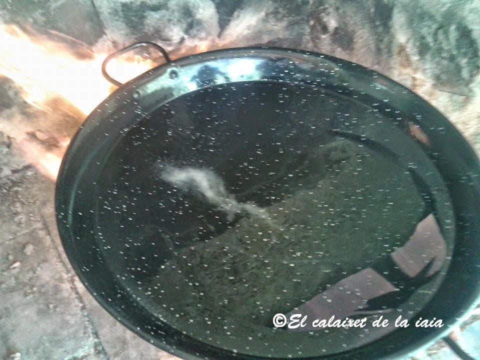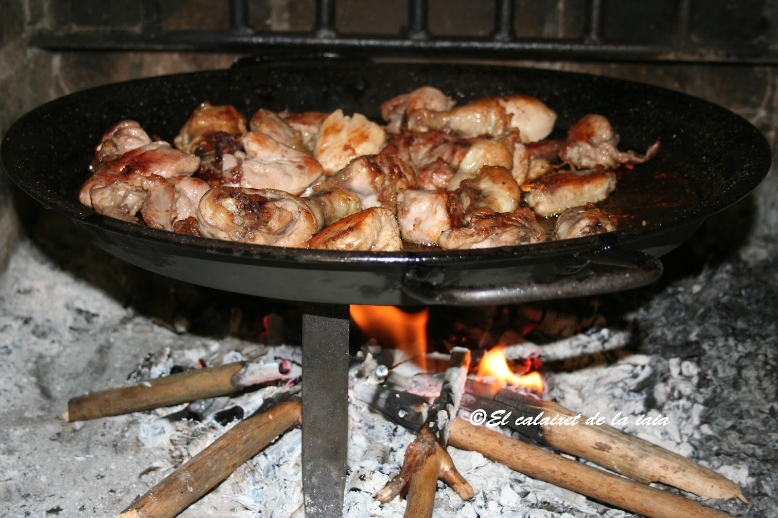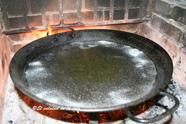 Sirva esta entrada, para hacerla de igual manera, en la vitro, paellero de gas, o cocina de fuego, donde os será más fácil controlar la cocción que a la leña, por lo demás se hace de igual manera.