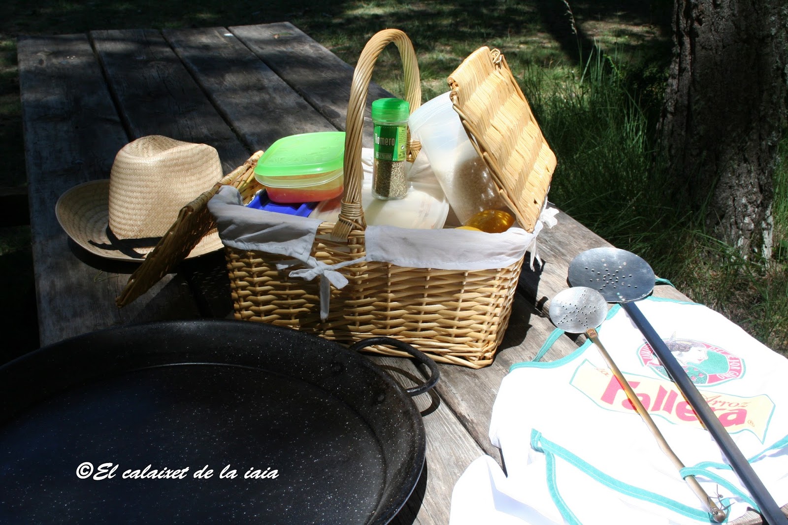 Nos vamos al campo y haremos una paella de llenya, pero…no rengo romero natural, ya que mi planta se heló y en éstos parajes solo hay tomillo, por lo que la tendré que hacer con romero de bote, aunque no es lo adecuado, tampoco tengo rojet, ni tabella, aunque si el resto de los ingredientes básicos, por tanto me hago idea de lo complicado que es hacerla fuera de Valencia, !PERO NO IMPOSIBLE¡