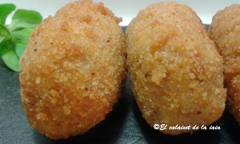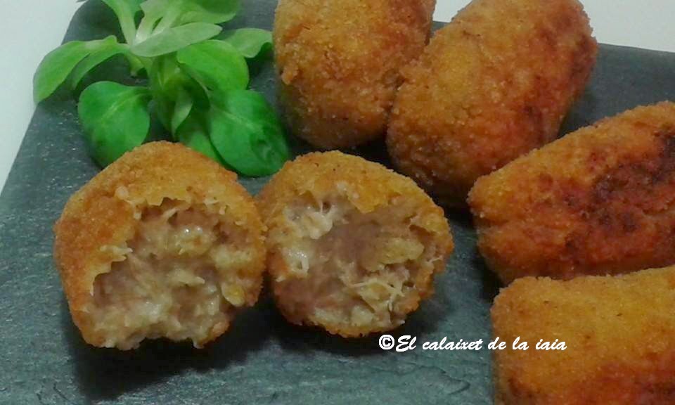 «Refrany; Croquetes cassolanes, moltes demanes.»Croquetas caseras, muchas pidas.