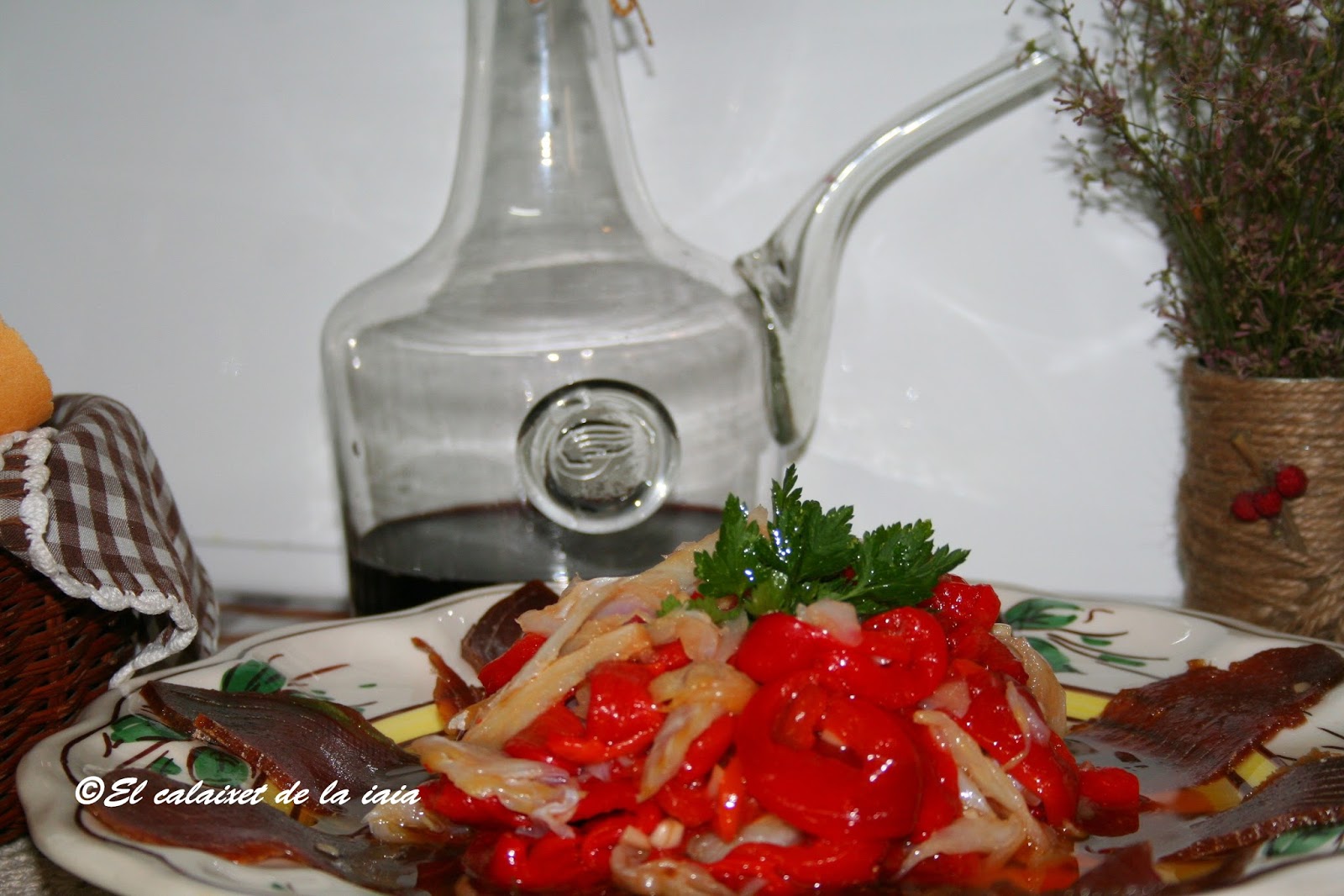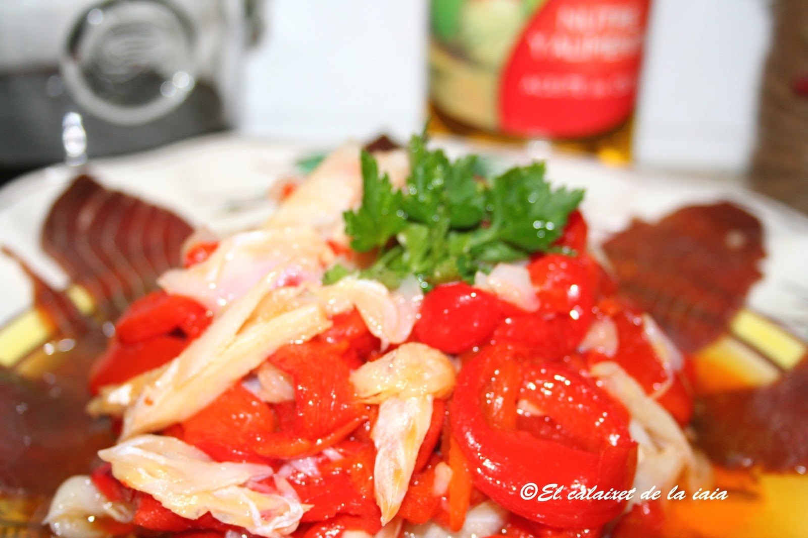 Es otra joia de nuestra extensa gastronomía, ya que el sabor salado del bacalao contrasta con el dulzor del pimiento y el jugo que suelta este cuando se entremezclan con el aceite de oliva, los ajos y la moixama, hace que haya que proveerse de buenos trozos de pan, para mojar en el plato, madre de Diossss que delicia… mmm ñam ñam