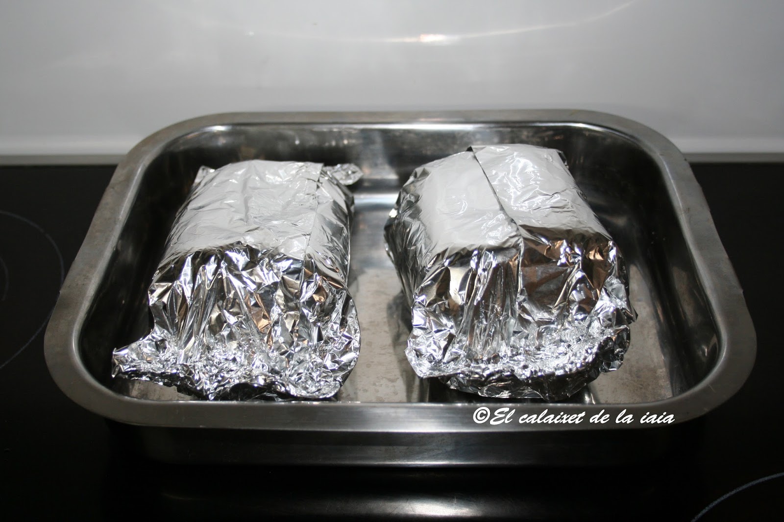 Los sacamos con cuidado de no quemarnos, del papel de aluminio, y los dejamos entibiar.