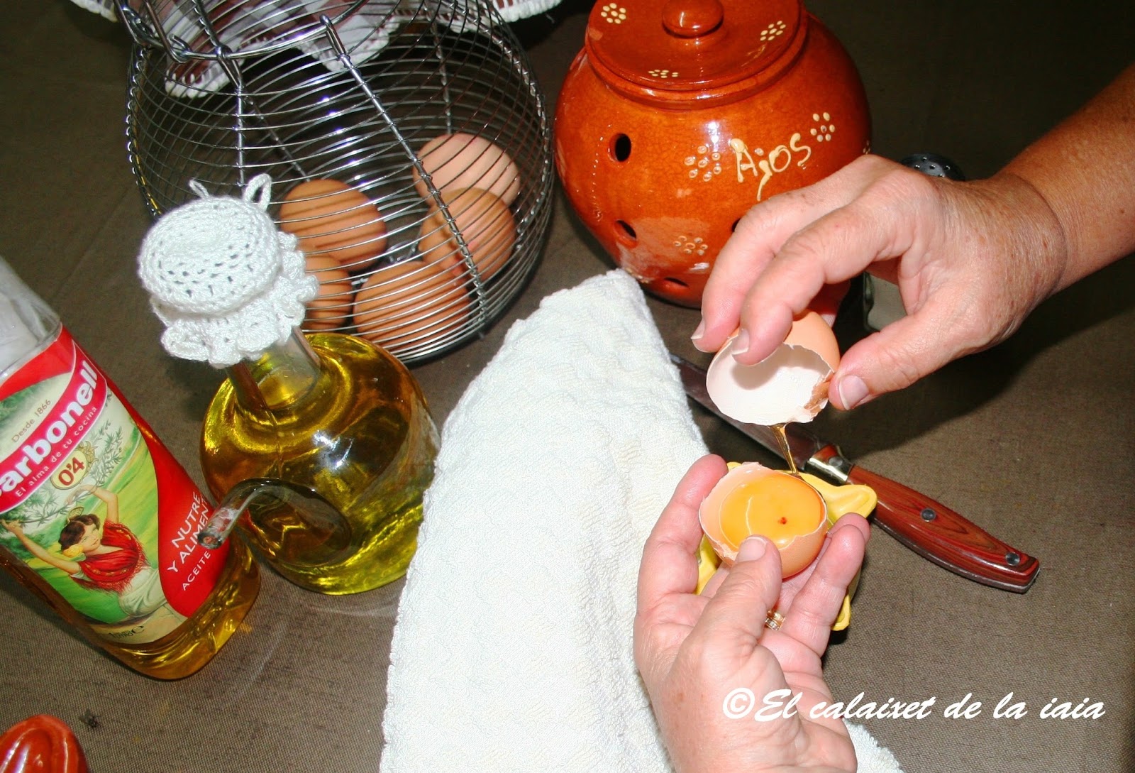 Edito esta entrada unos cuantitos años despues, ya que eso del huevo crudo en tortillas, mayonesas y all i oli, me preocupaba muuucho por la salmonella y he de deciros que he dado con la solución y más fácil y sencilla, no puede ser. Aquí lo tenéis explicado paso a paso https://elcalaixetdelaiaia.es/?p=26327