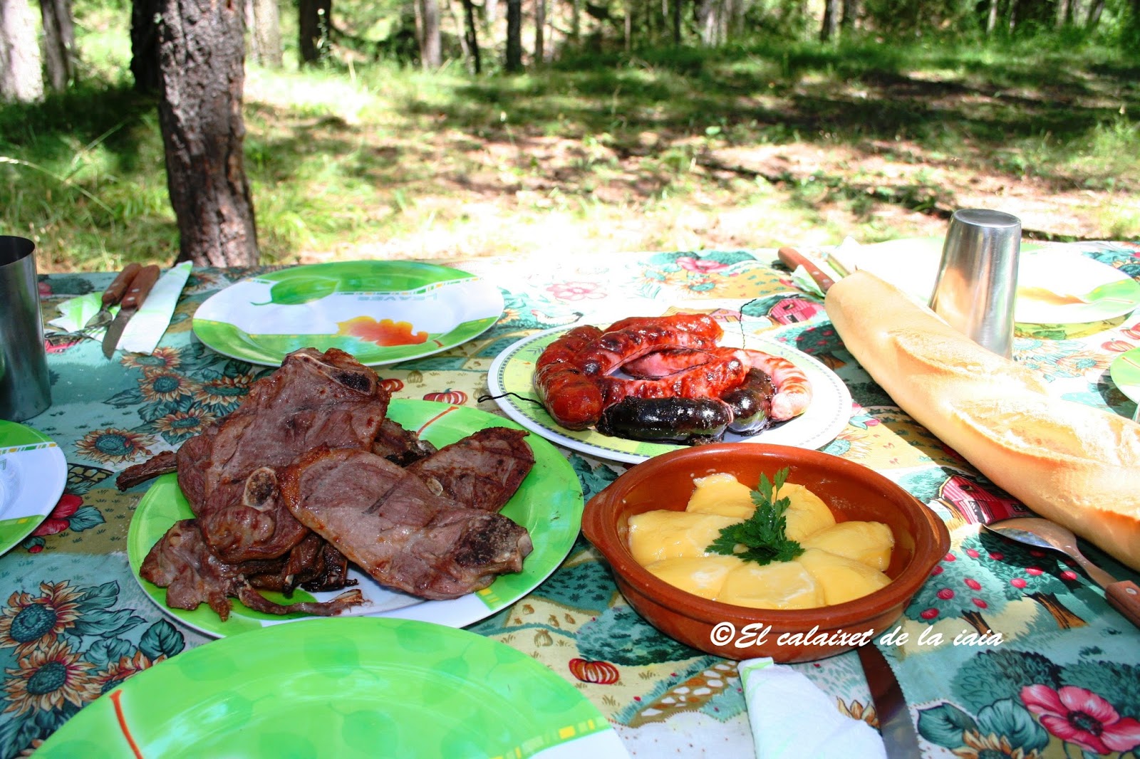 Hemos aprovechado que salíamos al monte y hemos asado unas chuletas de cordero y un poco de embutido a las brasas