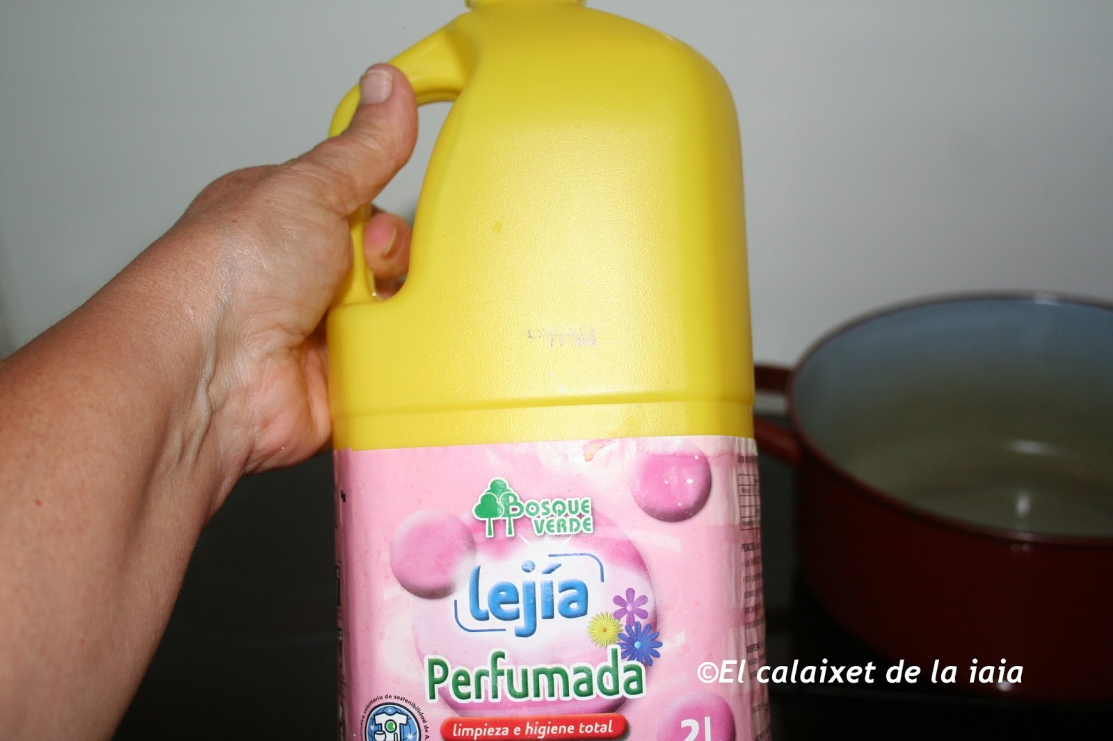 espero a que la lejía se caliente, y cuando lo hace, le doy unas vueltas para que pase por todo el interior.