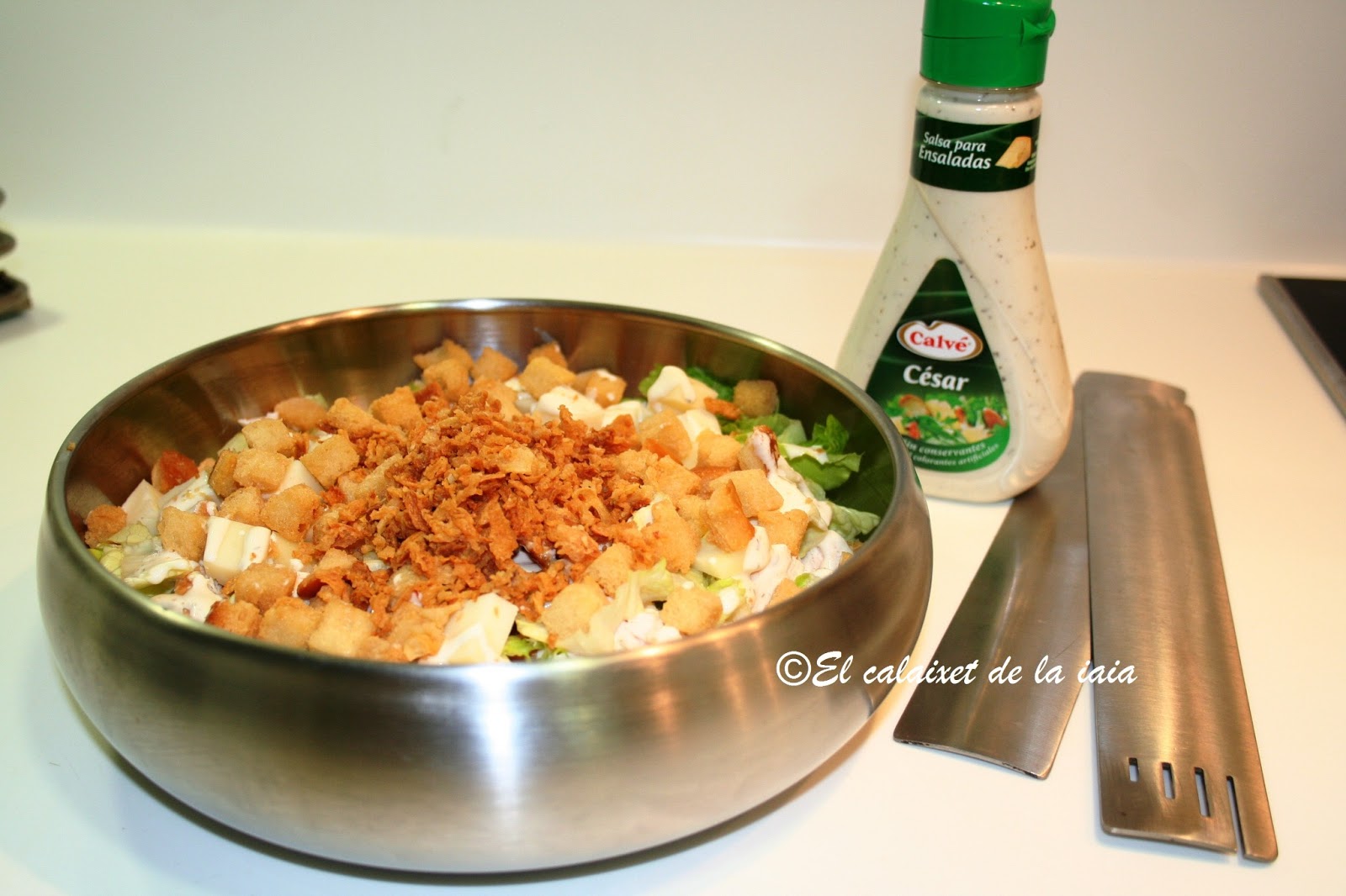 La salsa César la preparo habitualmente en casa porque sale mas barata, y muchísimo mas buena si queréis prepararla, aquí tenéis el paso a paso https://elcalaixetdelaiaia.es/?p=1188