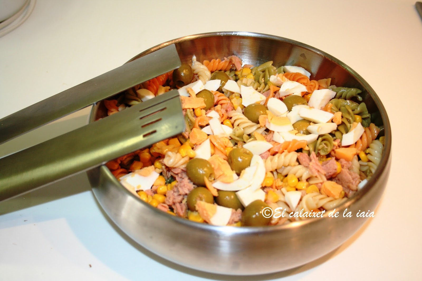 Con éstos calores que nos han llegado de golpe…nada como una buena ensalada de pasta, tanto para la comida, como para la cena, aunque recordar en la cena los hidratos de carbono…hay que dar un buen paseito antes de irse a la cama.