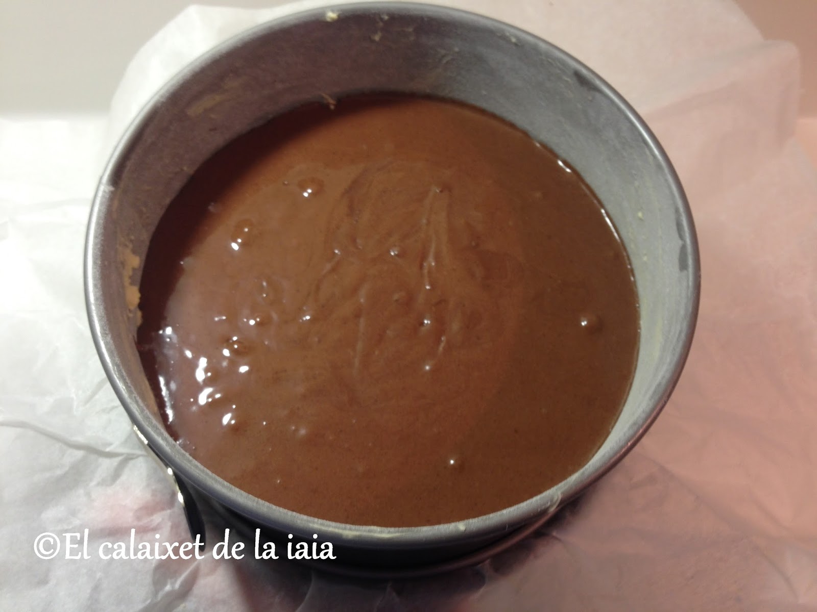 Colocamos en la parte baja del horno precalentado a 170º, durante 60 minutos. Éstos tiempos son orientativos, porque cada horno funciona de una manera y necesita unos tiempos distintos, controlad el vuestro, hasta que le cojáis el «truqui», de hecho tengo que deciros, que cuando he hecho éste bizcocho en otros hornos, en cada uno he necesitado un tiempo distinto